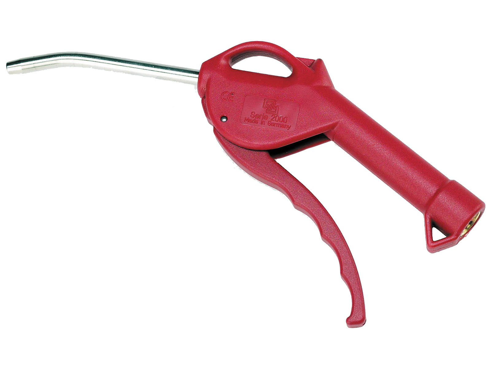 Rød blæsepistol i plast med aluminium blæserør. Tilslutning 1/4" indv. gevind. Fås i flere varianter.