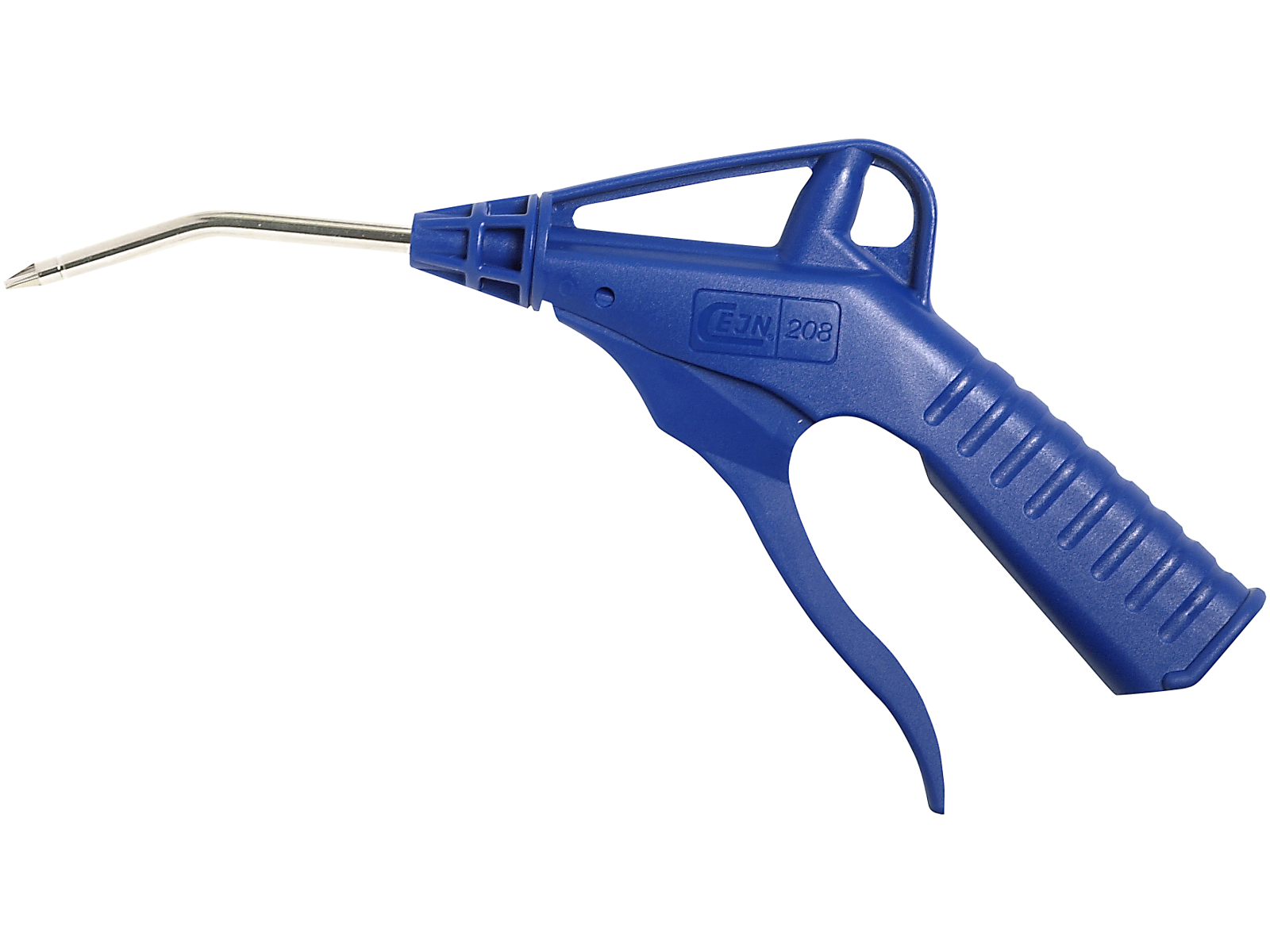 Trykluft- og væskepistol med ergonomisk greb, høj blæsekraft og nemt regulerbart flow. Pistol med 90 mm blæserør. Pistolen er udført i plast med NBR-pakninger og metaldele i messing. Maks. arbejdstryk 16 bar, 1/4" gevindmuffe tilslutning. Cejn Serie 208 blæsepistol tilbydes i mange versioner, inklusive standard fuld-flow, støj-reducerende Star-Tip og en trykreguleret sikkerhedsversion. Forskellige rør og mundstykker kan fås til at opfylde specifikke anvendelseskrav. Fås med flow fra 190 - 500 ltr/min.