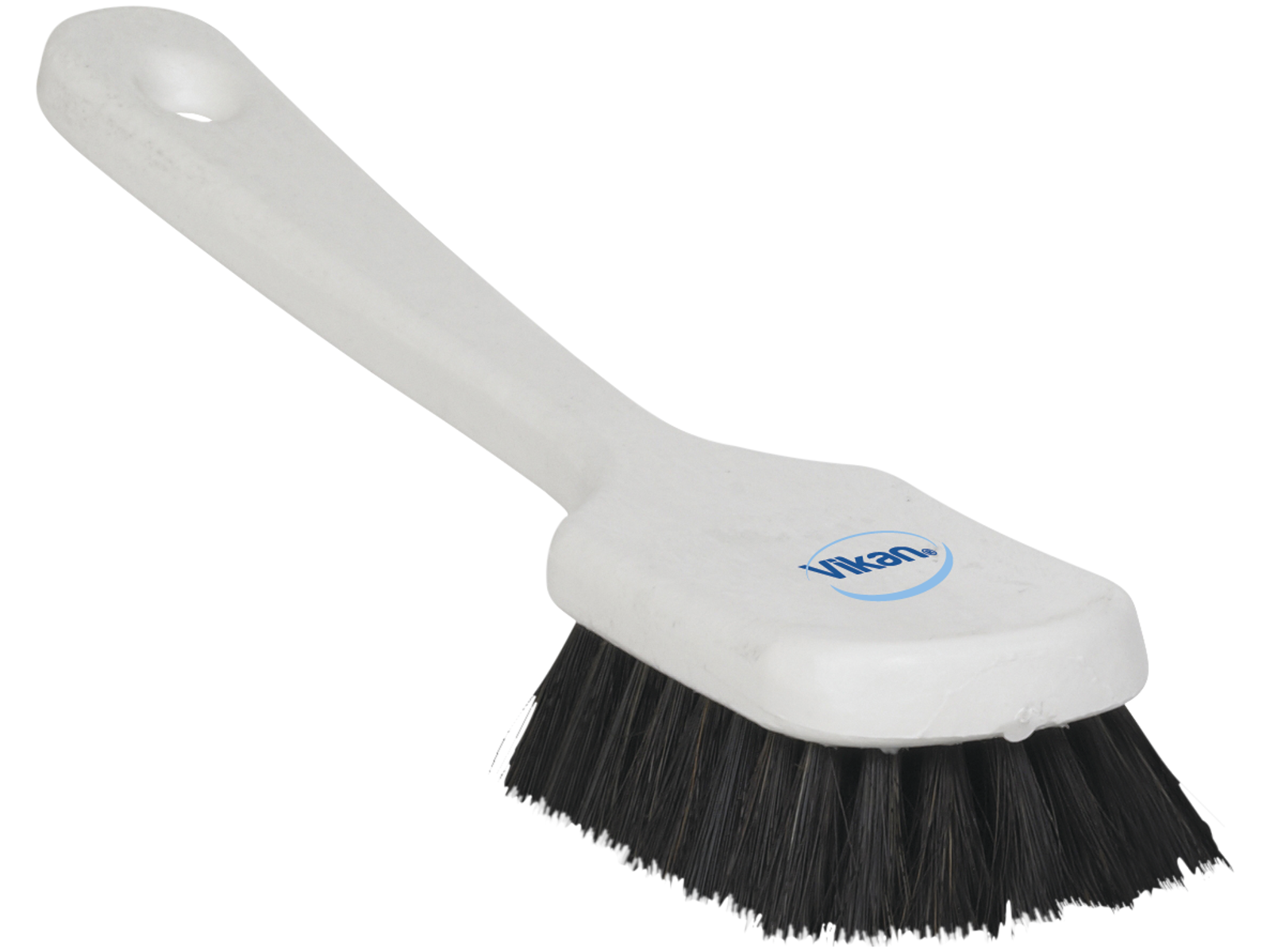 Hvid afsæbningsbørste (270 mm) i polypropylen med blød hårblanding (synlig længde 22 mm). Velegnet til rengøring af indendørs fliser og blanke flader.
