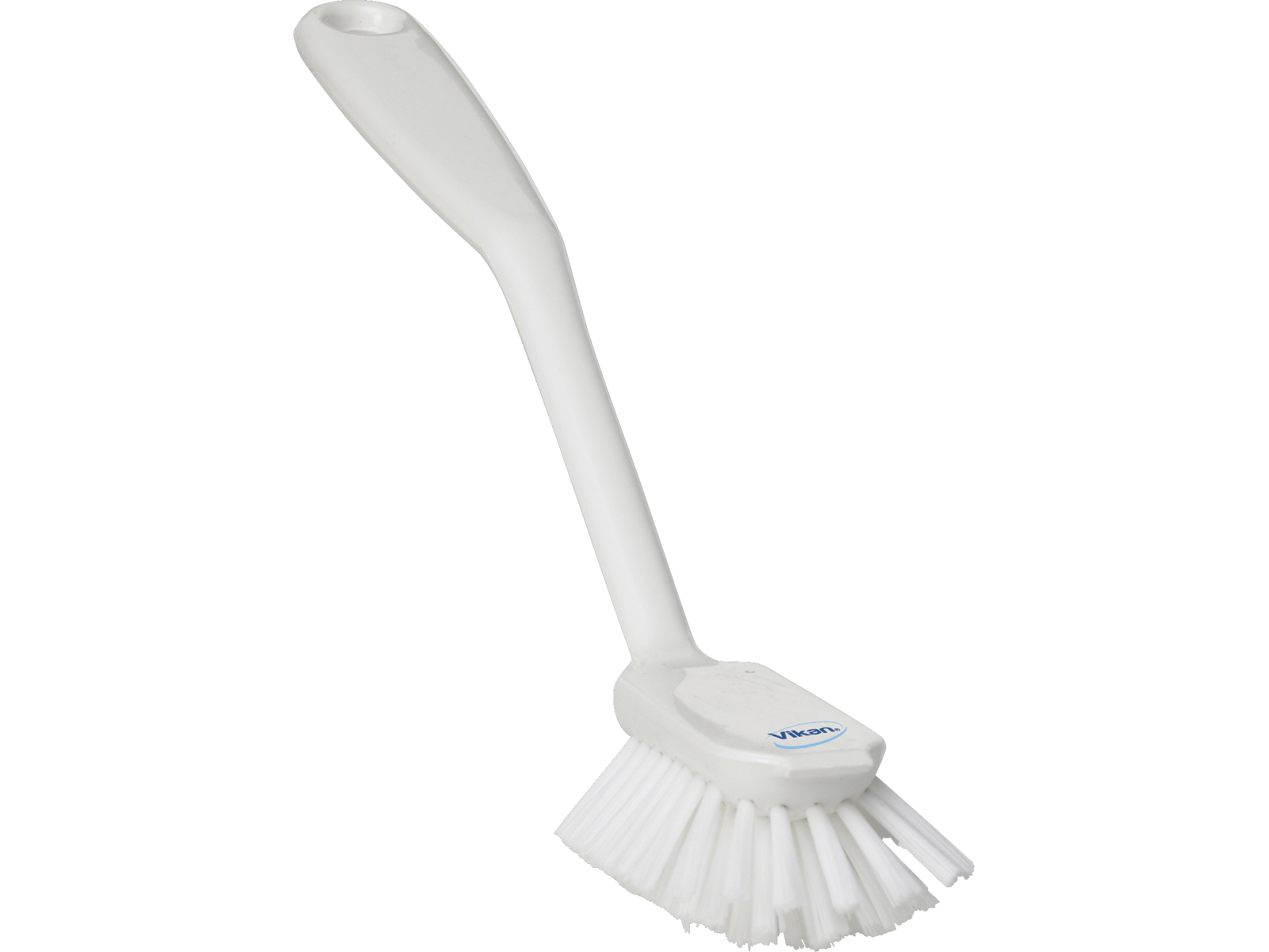 Opvaskebørste med nylonhår og skrabekant. Særdeles velegnet til gryder og stegepander.
