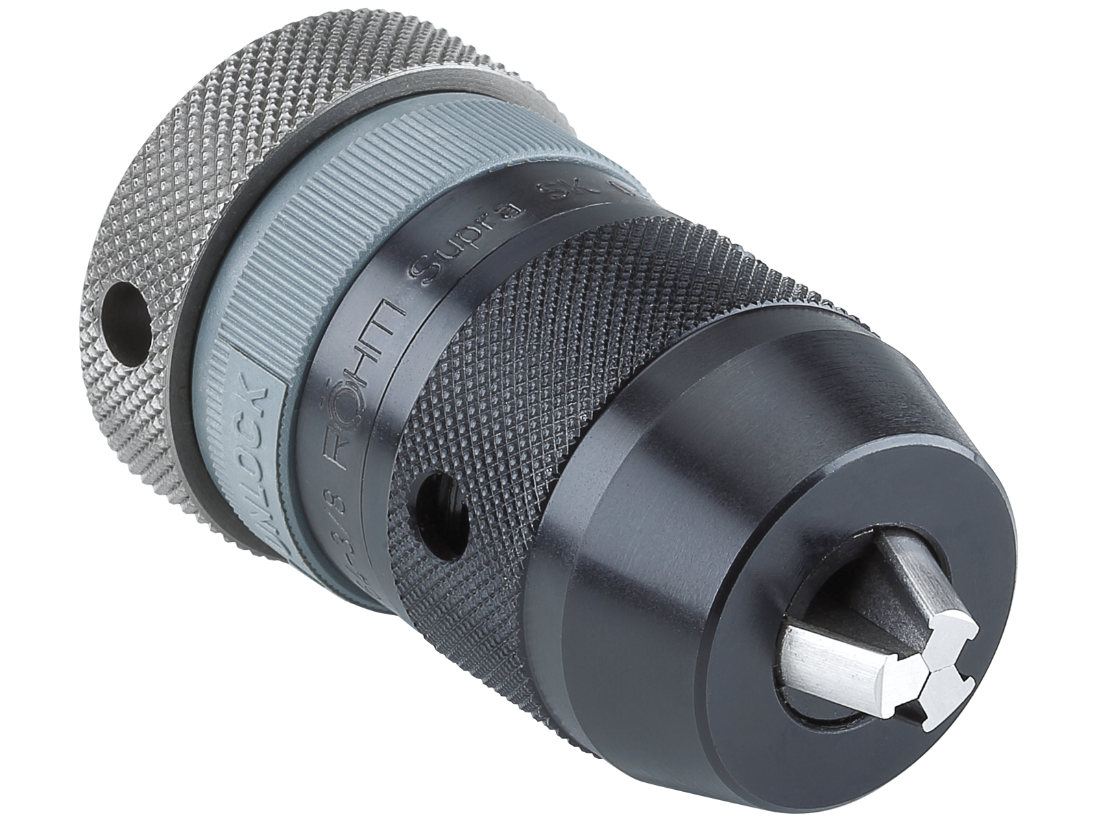 • Selvspændende borepatron til slagboremaskiner og boremaskiner op til 1.300 W. Højre-/venstreløb med låsefunktion. Koncentricitet på op til 0,25 mm samt øget tilspændingskraft. Forseglet mod indtrængning af borespåner og kølemiddel.