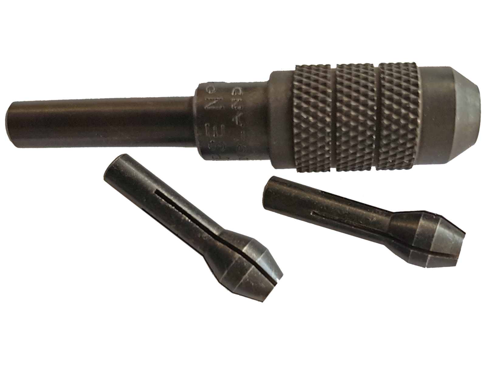 Patron med 3 spændetænger fra 0,25-2,5 mm. Anvendes til at gribe fat om meget små bor. Hovedsageligt til automatiske drejebænke, hvor patronen ikke roterer. Totallængde på 65 mm.