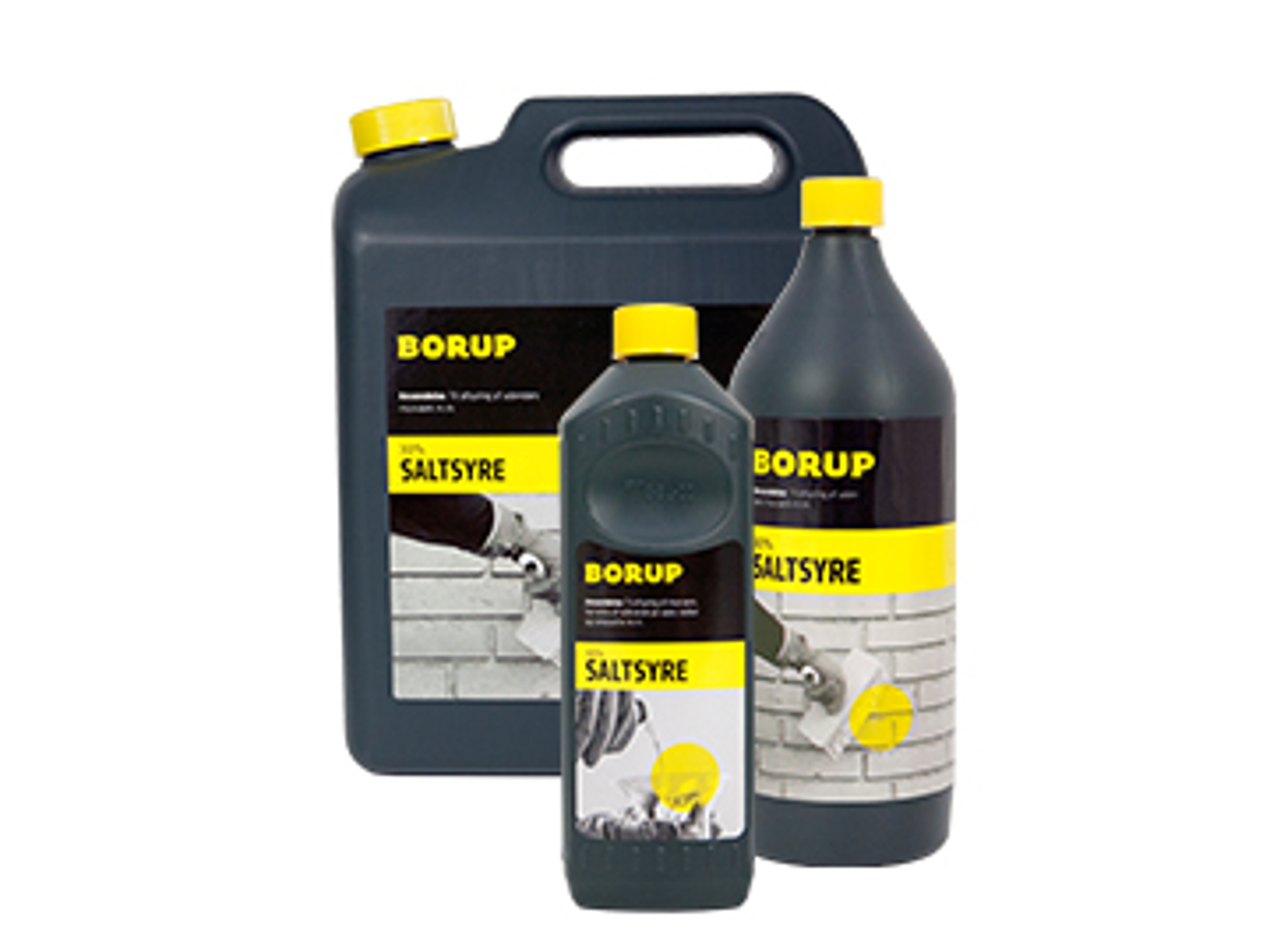 Hæld 1 del Saltsyre 30% ned i 20 dele vand. Afvask mur-værket med hvidtekost eller børste. Sørg for ikke at stænke.