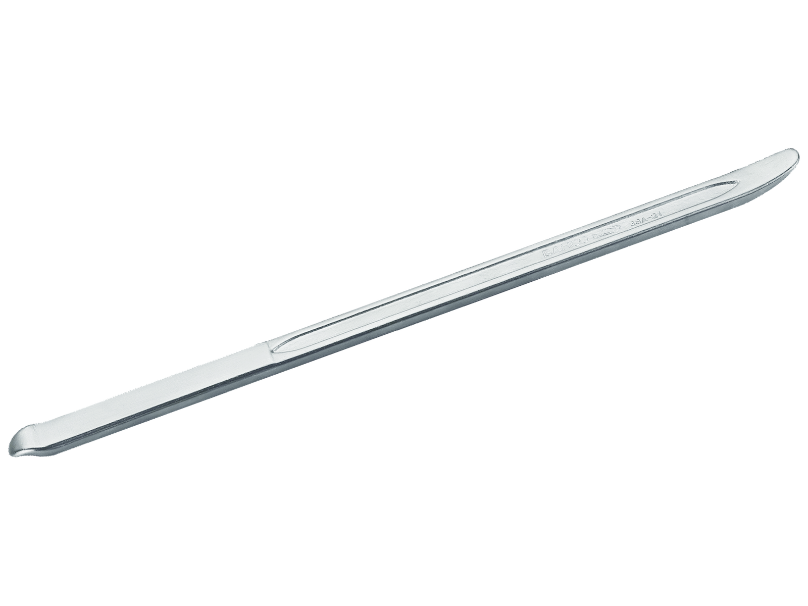 Dækjern til aftagning af dæk - velegnet til motorcykler, personbiler og lette varevogne. Jernet har et fladt mønster med krogformede ender og findes i længder fra 300 til 650 mm. Højtlegeret Cr-V-stål, forniklet og forkromet. Hårdhed 40-48 HRC.
