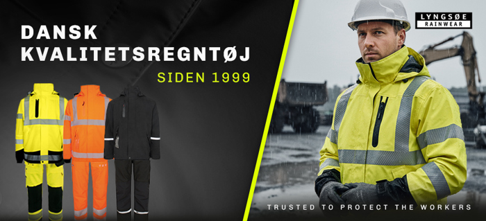 Lyngsøe Rainwear udvikler slidstærkt og funktionelt regntøj til professionelle, der arbejder i krævende vejrforhold. Sortimentet spænder fra let regntøjsbeklædning til certificeret skal- og vinterbeklædning, hvor komfort, sikkerhed og høj synlighed er i fokus. Her findes løsninger til brancher, der stiller krav om fødevaregodkendelse, brandhæmning eller lysbue certificering – altid med målet om at levere pålidelig beskyttelse i alle miljøer.