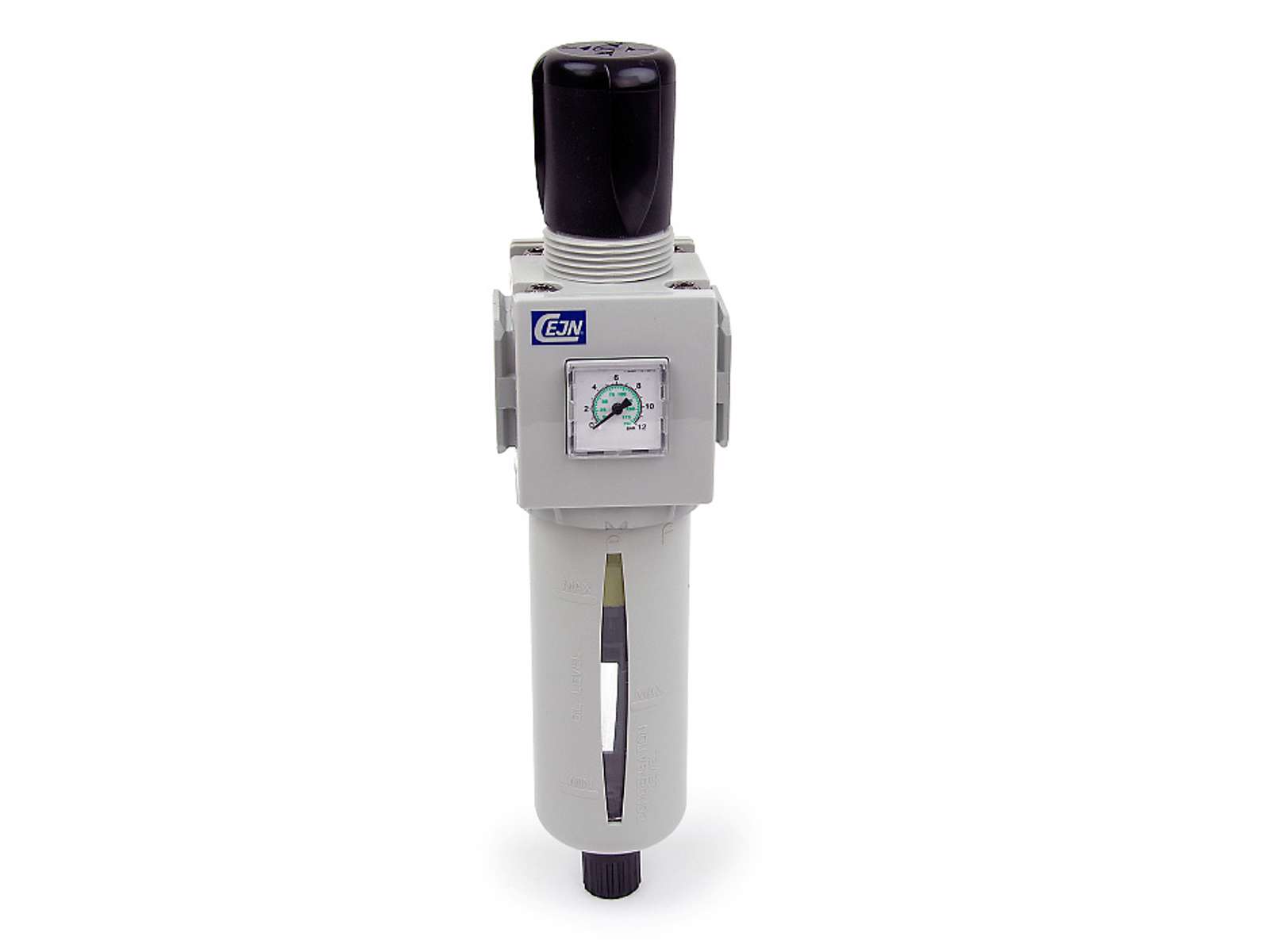 Filter/regulator 652. Model 652 kombinerer filter, regulator og manometer for optimal ydeevne. Filteret fjerner effektivt fugt eller snavs, og regulatoren leverer reguleret og konstant lufttryk. Takket være det kompakte design, er denne model ideel til applikationer, hvor pladsen er begrænset. Model 652 kan håndtere trykluftsystemer, som arbejder ved op til 16 bar (232 PSI) indgangstryk. Modellen har en polycarbonat beholder, en let synlige niveau indikator, en fleksibel rullende membran for maksimal levetid, samt en låseanordning. Applikationsområder: Stort set alle industrier, så som fremstillingsindustrien, fødevareindustrien, forarbejdningsindustrien, tømrerindustrien, papirfabrikker, etc., er afhængige af trykluft som energikilde. Luftbehandlingssystemer er særligt vigtige i trykluftsnet med adskillige luftudtag og et omfattende rørledningssystem.