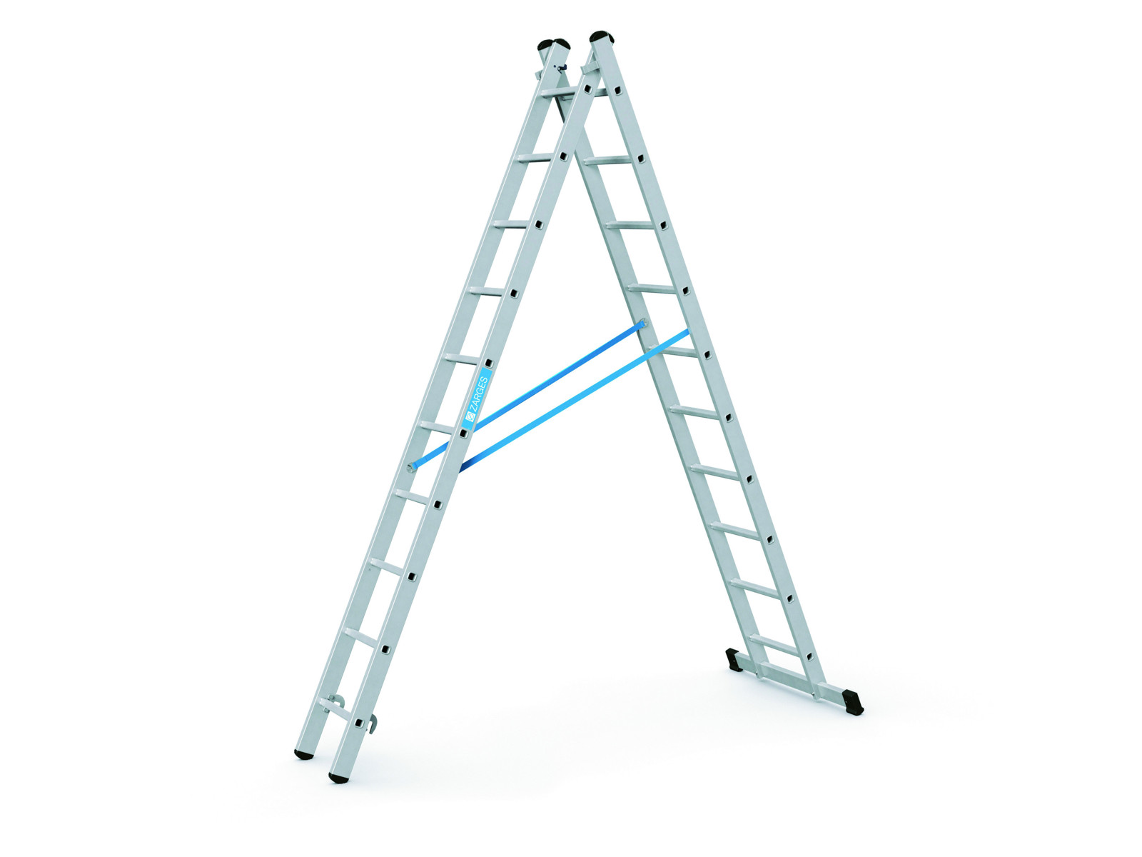 • Combimaster Plus X kombistige: wiener- og skydestige i kombination for sikker stabilitet. Kan anvendes som 2-delt skydestige eller som wienerstige. Sikring med perlonremme med stor trækstyrke med indsyet fastgørelseslask. Vanger af ekstruderede aluminiumprofiler for højeste stabilitet. Udskiftelige stigesko for skridsikker stabilitet. Trin-vangeforbindelse med kvalitetsbertling for stor styrke. Opfylder standarden EN 131 professionel. Fås i flere varianter.