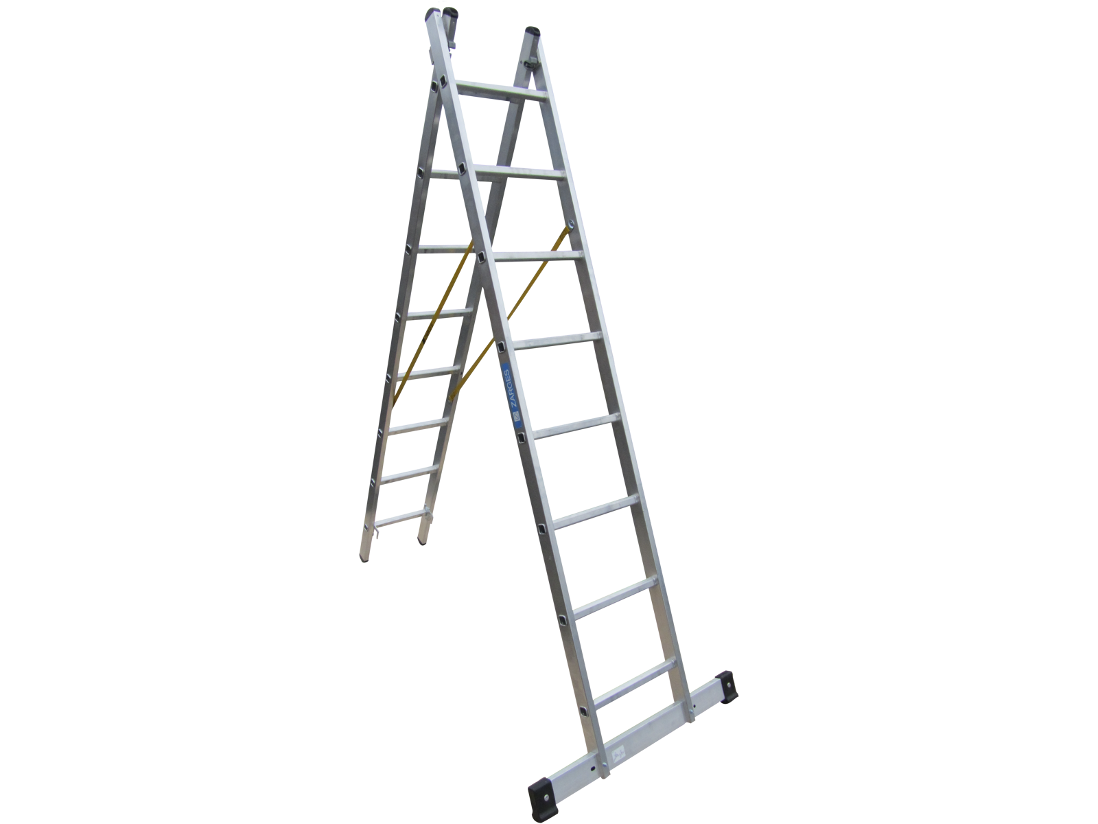 Combimaster Plus X kombistige: wiener- og skydestige i kombination for sikker stabilitet. Kan anvendes som 2-delt skydestige eller som wienerstige. Sikring med perlonremme med stor trækstyrke med indsyet fastgørelseslask. Vanger af ekstruderede aluminiumprofiler for højeste stabilitet. Udskiftelige stigesko for skridsikker stabilitet. Trin-vangeforbindelse med kvalitetsbertling for stor styrke. Opfylder standarden EN 131 professionel.