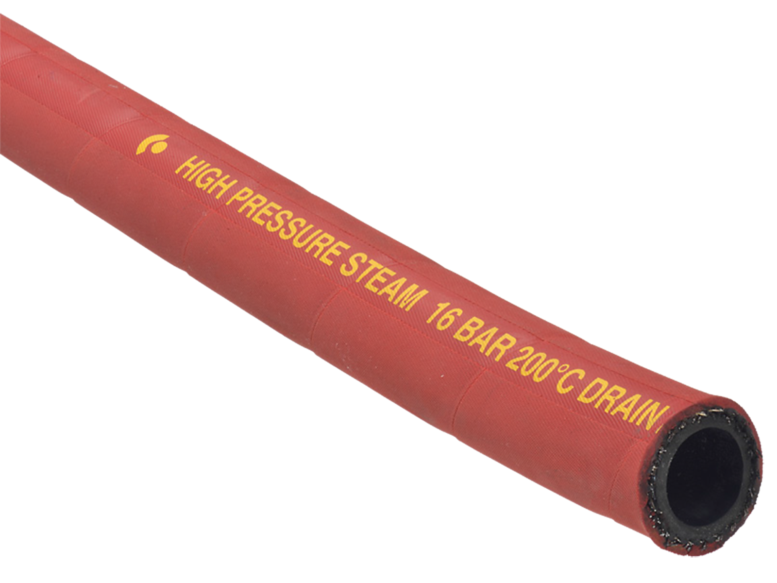 Dampslange i rød speciel syntetisk gummi, EPM indvendig, med indlæg af flettet ståltråde. Mærket med: "HIGH PRESSURE STEAM 16 BAR 200°C DRAIN AFTER USE". Anvendes til mættet damp med et maksimum tryk på 16 bar (247 PSI) på kemiske fabrikker, stålværker, skibsværfter, raffinaderier, og øvrig industri. Varme-, vejr-, slid-, damp-, og ozonbestandig.Sikkerhedsfaktor: 3:1. Temperatur: -40°C til +200°C. Pris pr. meter. Fås i flere dimensioner.