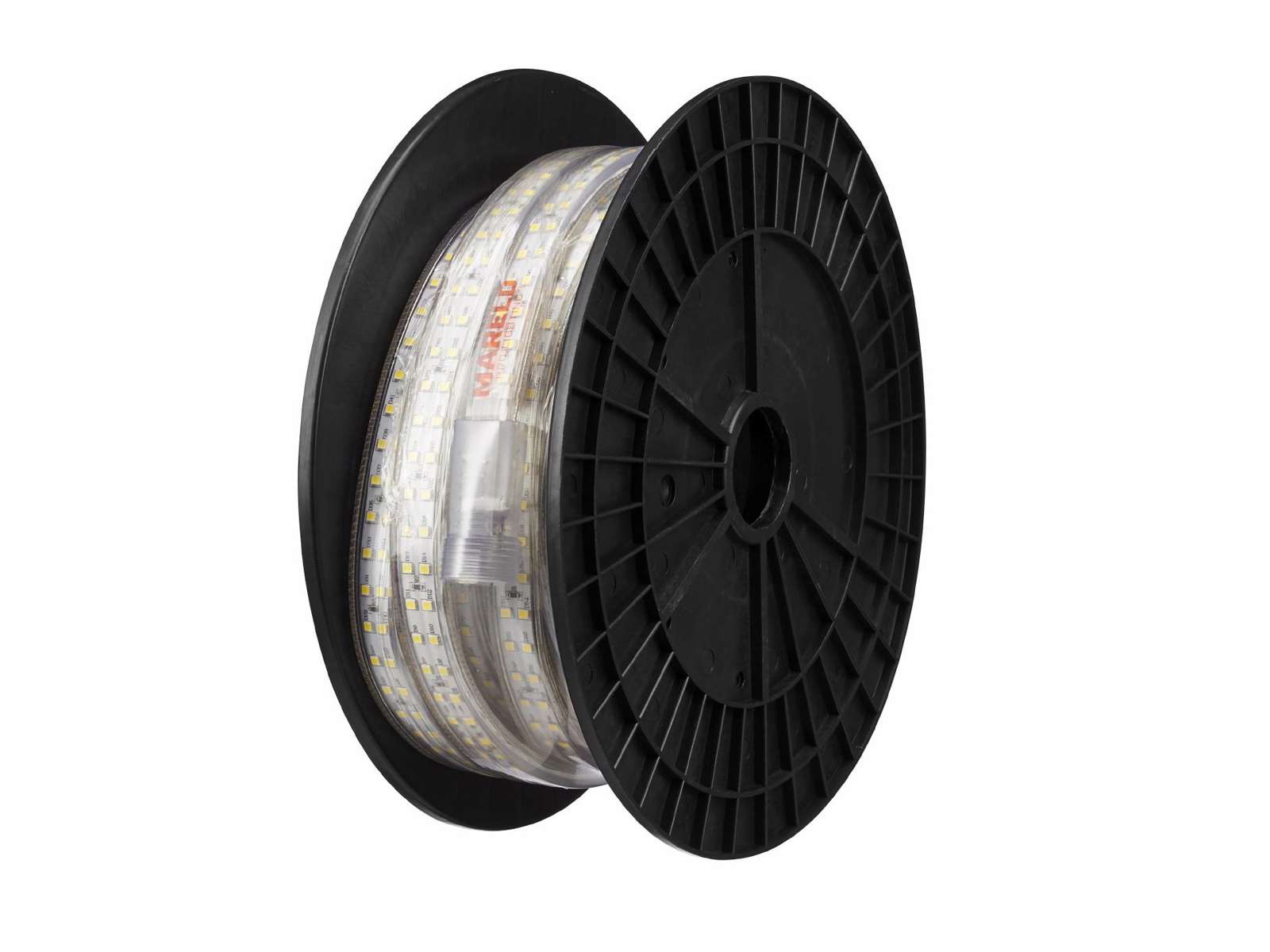 • Listen har 180 små LED-pærer pr. meter. Primært beregnet til afmærkning af trapper og elevatorskakte samt til generel belysning på byggepladser. Der kan serieforbindes op til 60 meter LED-liste på et elkabel. Elkablet købes separat. Strippen skal rulles ud i fuld længde for at undgå overophedning.