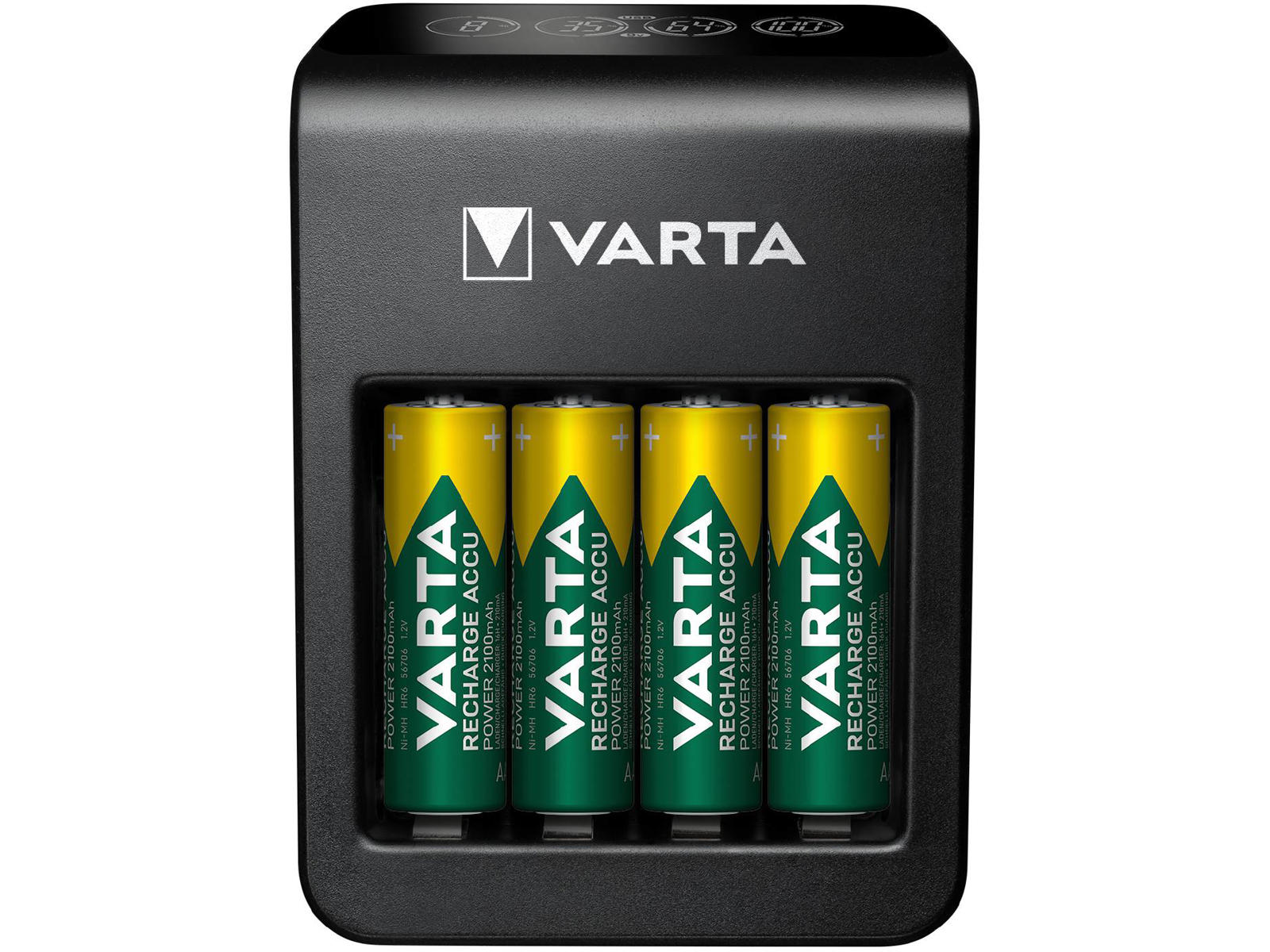 VARTA LCD Plug opladeren+ er i stand til at oplade op til 4 AA/AAA og et genopladeligt 9 V batteri takket være de individuelle opladningskanaler. En ekstra USB-port på 2.4 A muliggør opladning af eksterne apparater.