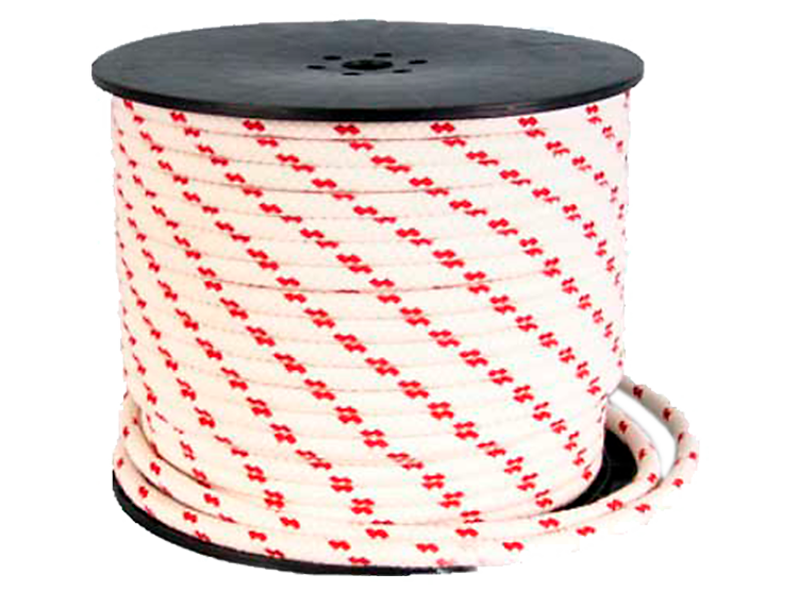 Dobbeltflettet polyester-skødetov med hjerte. Hvid med røde nister. Tovværket er anvendelig til maritimt brug på både samt overalt, hvor man ønsker markering ved hjælp af et tydeligt og stærkt tov. Skødetovet er også brugbart inden for landbrug, industri og hobby. Leveres i ruller à 110 mtr.