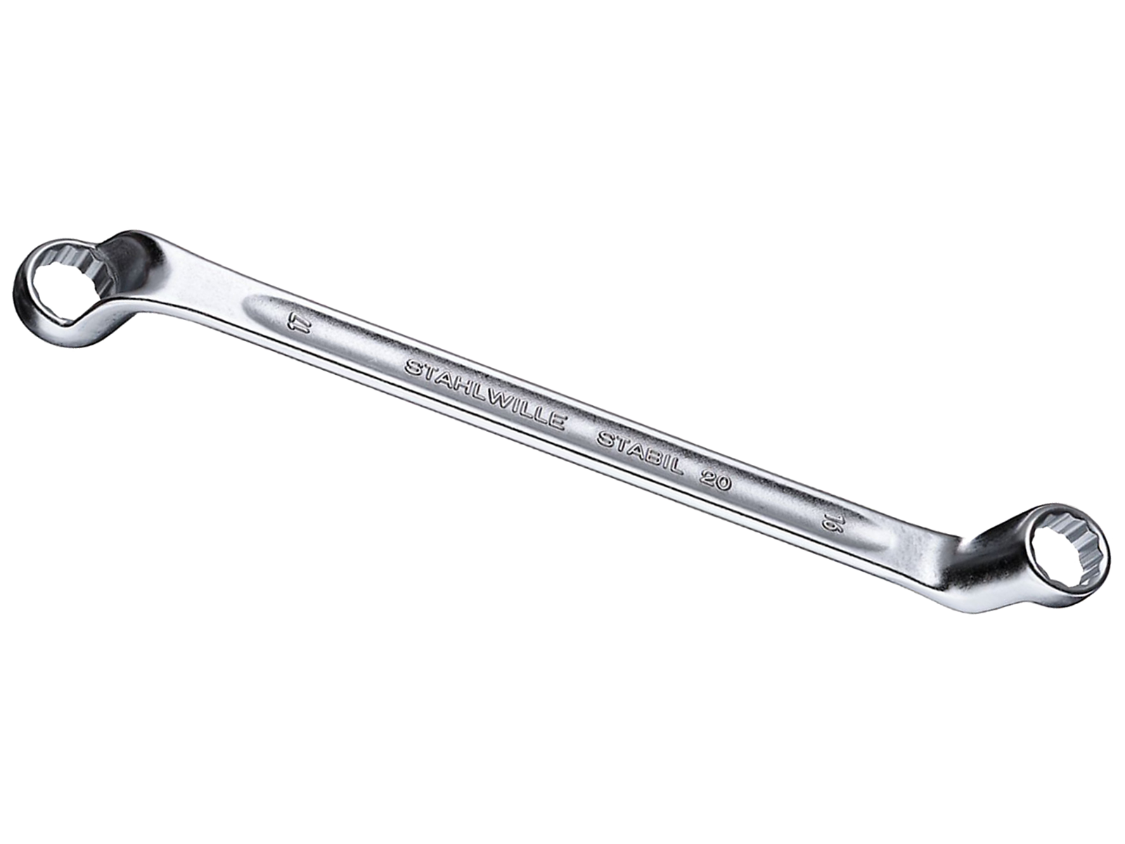 STW dobbel ringnøgle 20 model stabil, dybforkrøppet, med metriske mål. DIN 838/ISO 10104 (metriske mål). Forkromet.