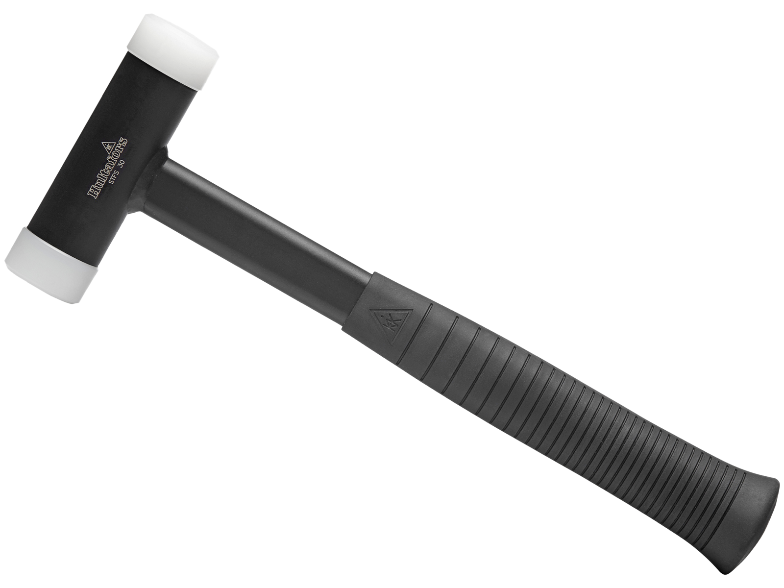 Rekylfri hammer med slaghoved i stål fyldt med dæmpende stålkugler. Udskiftelige nylonbaner med hårdhed 70 shore, som er skånsomme mod arbejdsemnet. Stålskaft med ergonomisk gummihåndtag i santopren. Hovedet er fyldt med stålkugler, som både er vibrationsdæmpende og mindsker rekylen. Fås i flere varianter.