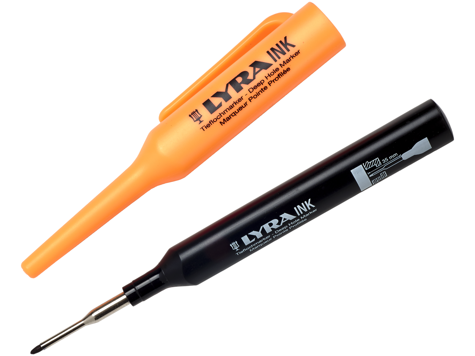 Lyra dybhulsmarkør. Velegnet til utilgængelige steder, forlænget pennespids i rustfri stål. Permanent, vandfast.