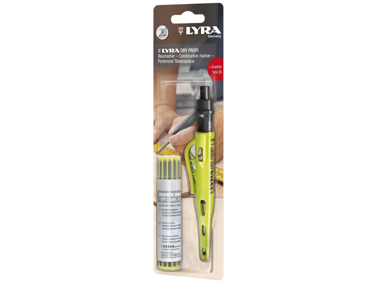 DryProfi dybhulspen med 12 stk. refill-grafit 2B.