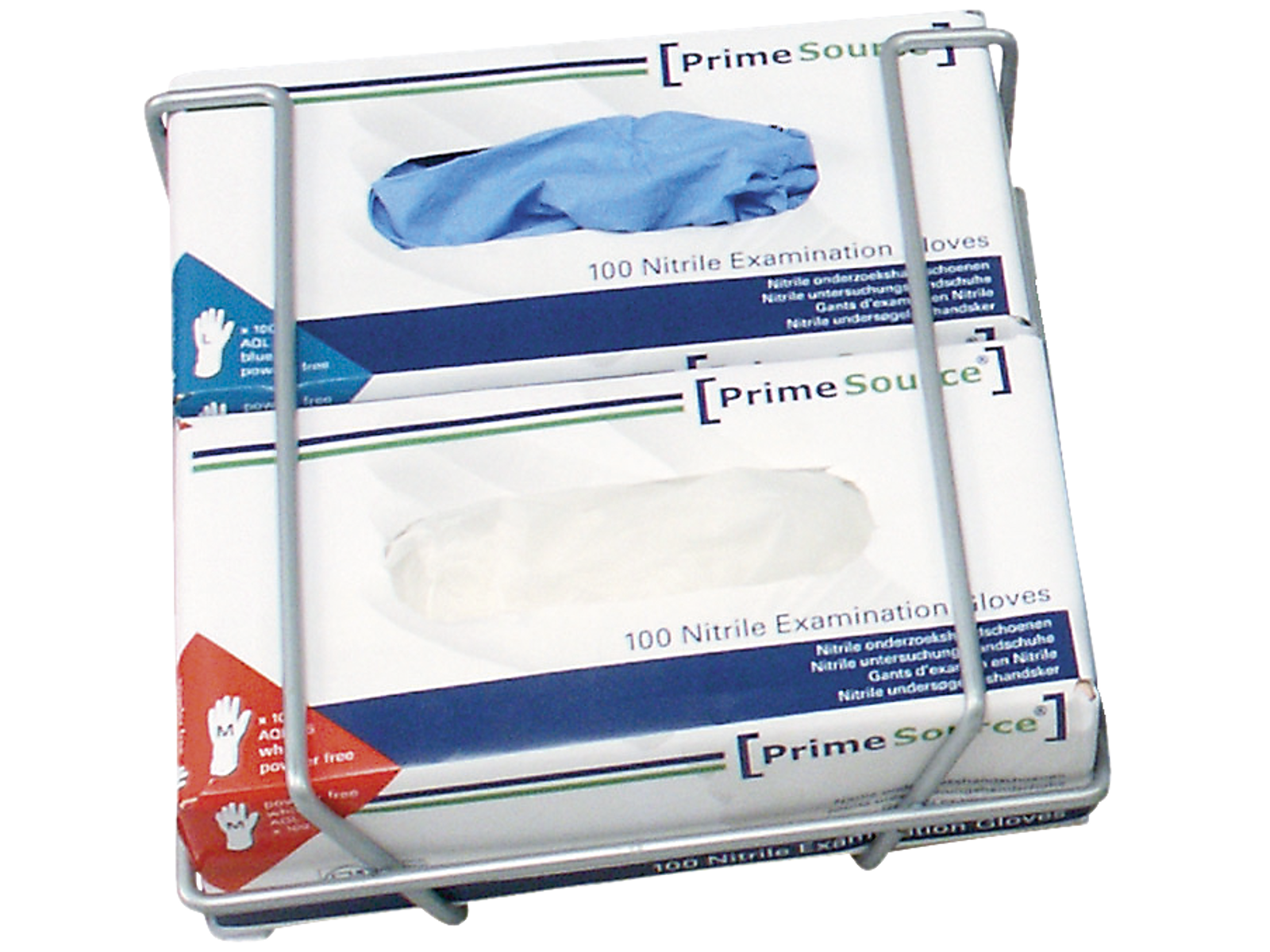 Handskestativ til to pakker engangshandsker. Stativet kan opsættes på væggen.