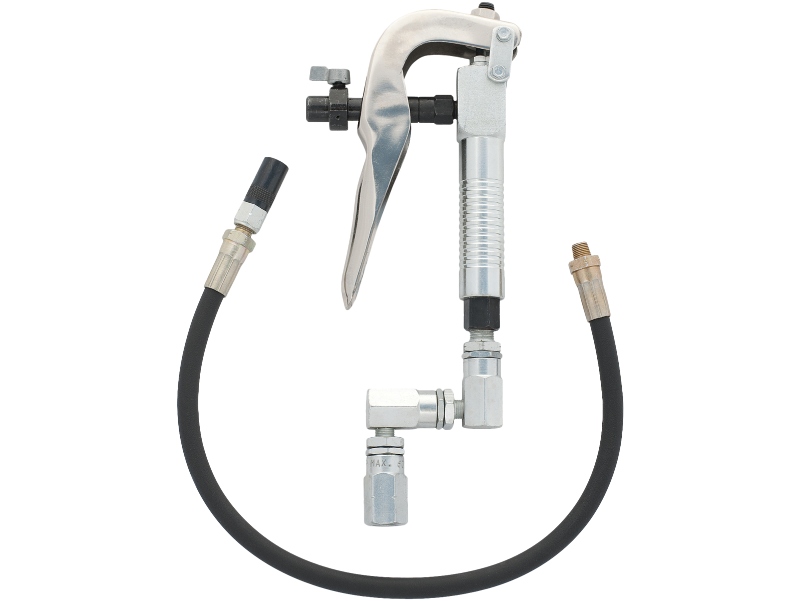 KABI højtryksfedtsmørepistol. Til smøreapparater. Med trykudligner, 300mm smøreslange m. 3-kæbet højtryksmundstykke 690 bar og Z-drejeled. Tilslutningsgevind: indv. 1/4"R.