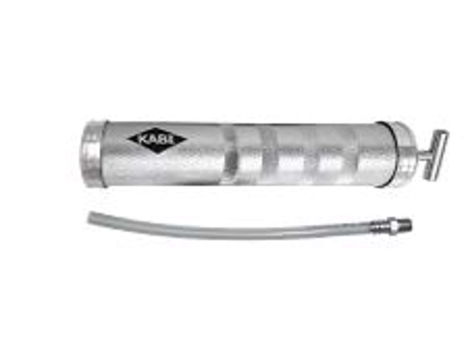 KABI oliesugepumpe. Af forzinket stål med fleksibel udløbsslange. Anvendes til både påfyldning og sugning. Indhold 500 ccm.