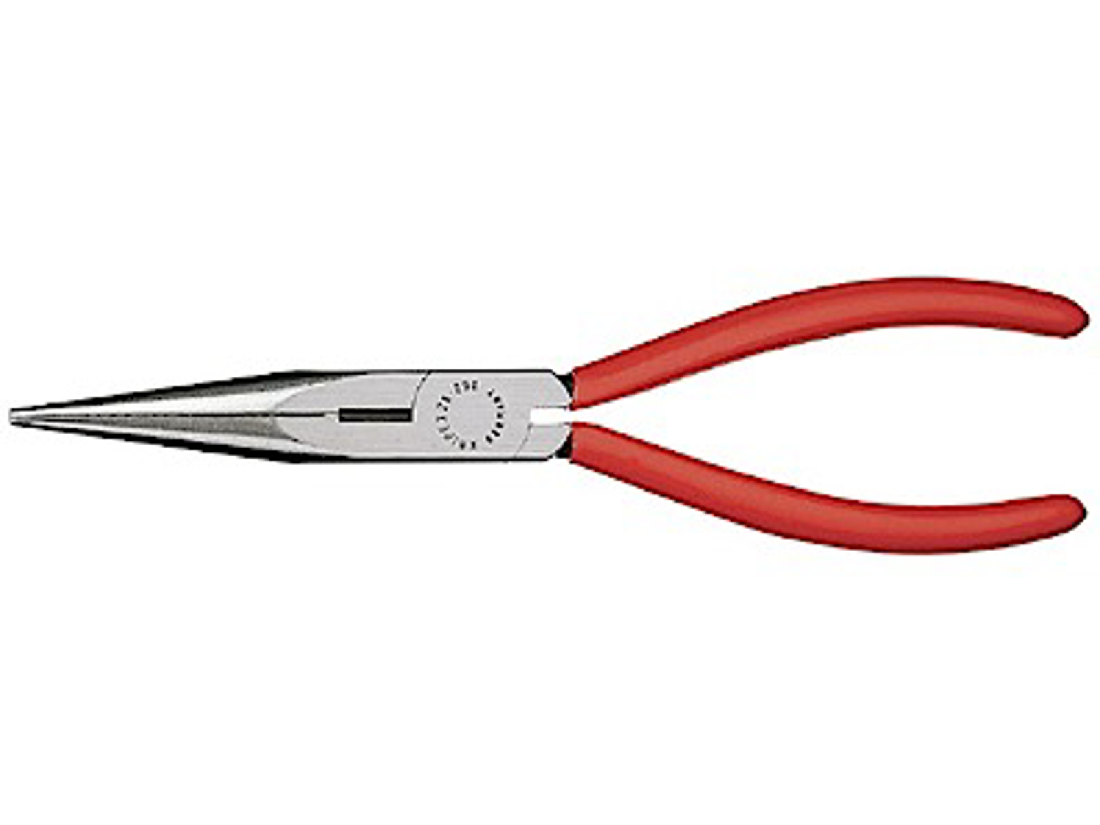 Fladrundtang med skær sort atramenteret 200 mm. Vridningstolerante, elastiske præcisionsspidser. Fladtrunde, lange, spidse kæber. Med skær (hårdhed ca. 61 HRC) til bløde, mellemhårde og hårde trådtyper. Vanadium- elektrostål- smedet, oliehærdet.