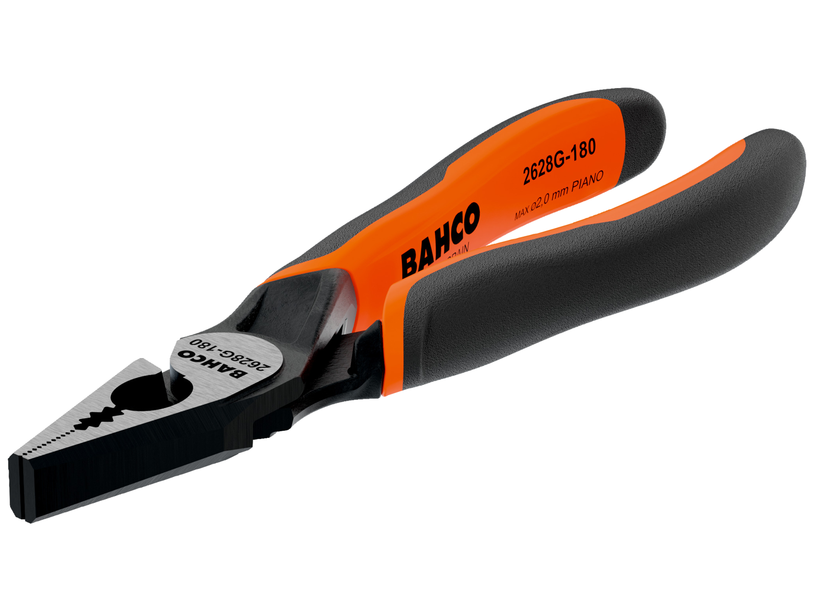 ISO 5746 kombinationstang med nøjagtige og hærdede skær til klipning af hårde materialer som fx pianotråd og fjedertråd. Den holdende del er forsynet med riflede kæber til fastholdelse af runde og flade emner og de afrundede kæber gør tangen ideel til opgaver hvor pladsen er trang. Nitteplaceringen sikrer stor udveksling med minimalt kraftforbrug. Model med returfjeder med on/off-funktion. Fremstillet af rustbeskyttet højtlegeret stål med sort finish og ergonomisk, tokomponent håndtag med store grebsflader.