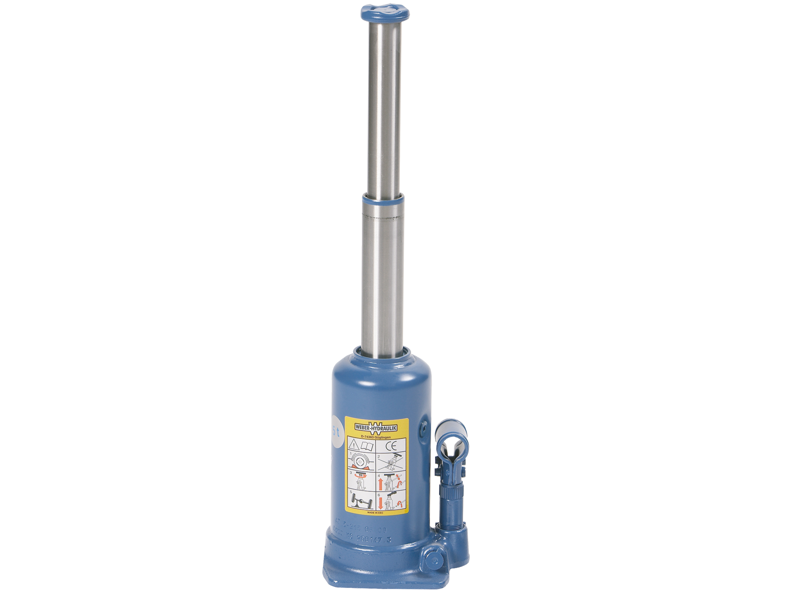 Hydraulisk flaskedonkraft med 2-trins teleskopcylinder for ekstra stor slaglængde. 3-delt galvaniseret pumpehåndtag for let opbevaring. Indbygget sikkerhedsventil sikrer mod overbelastning. Model med afrundet bundplade, som øger stabiliteten og sikkerheden, idet donkraften følger køretøjets hældning under løft.