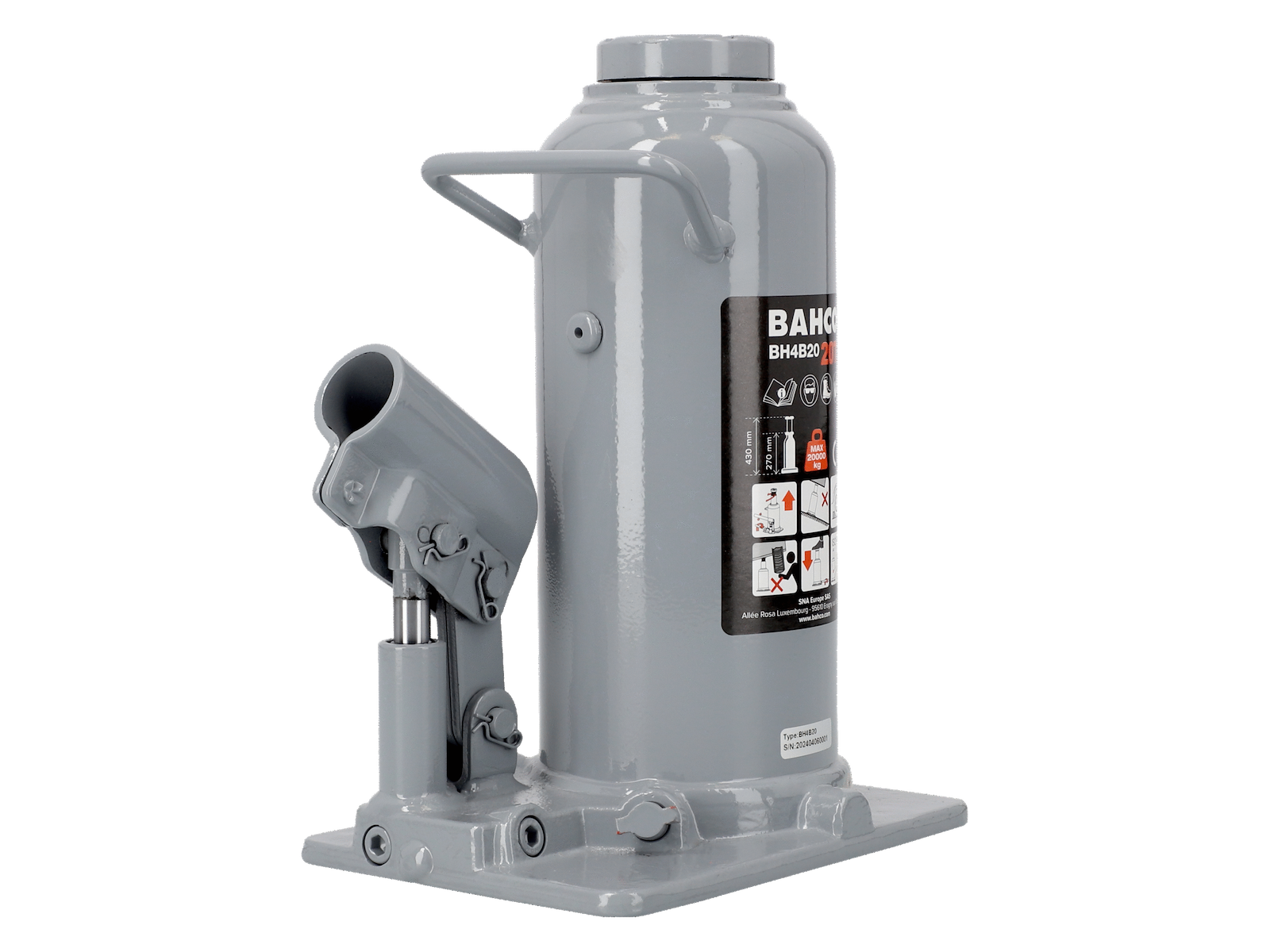 Premium hydraulisk flaskedonkraft designet til hyppig og kraftig brug og høje krav - velegnet til arbejde i lodret og vandret position. Større base for øget stabilitet. Kraftig forkromet løftestempel med nikkelbelægning giver længere holdbarhed. Svejset struktur sikrer den bedste ydeevne og forhindrer olielækage. Smedet stålbase for stor slid- og slagfasthed. Rillet sadel giver et sikkert løftegreb. Sikkerhedsventil forhindrer stemplet i at blive overbelastet, hvilket ville forårsage skade på stemplet. Arbejdsbetingelser mellem ÷20°C og +50°C. CE-certificeret af Official Independent Technical Inspection Association.
