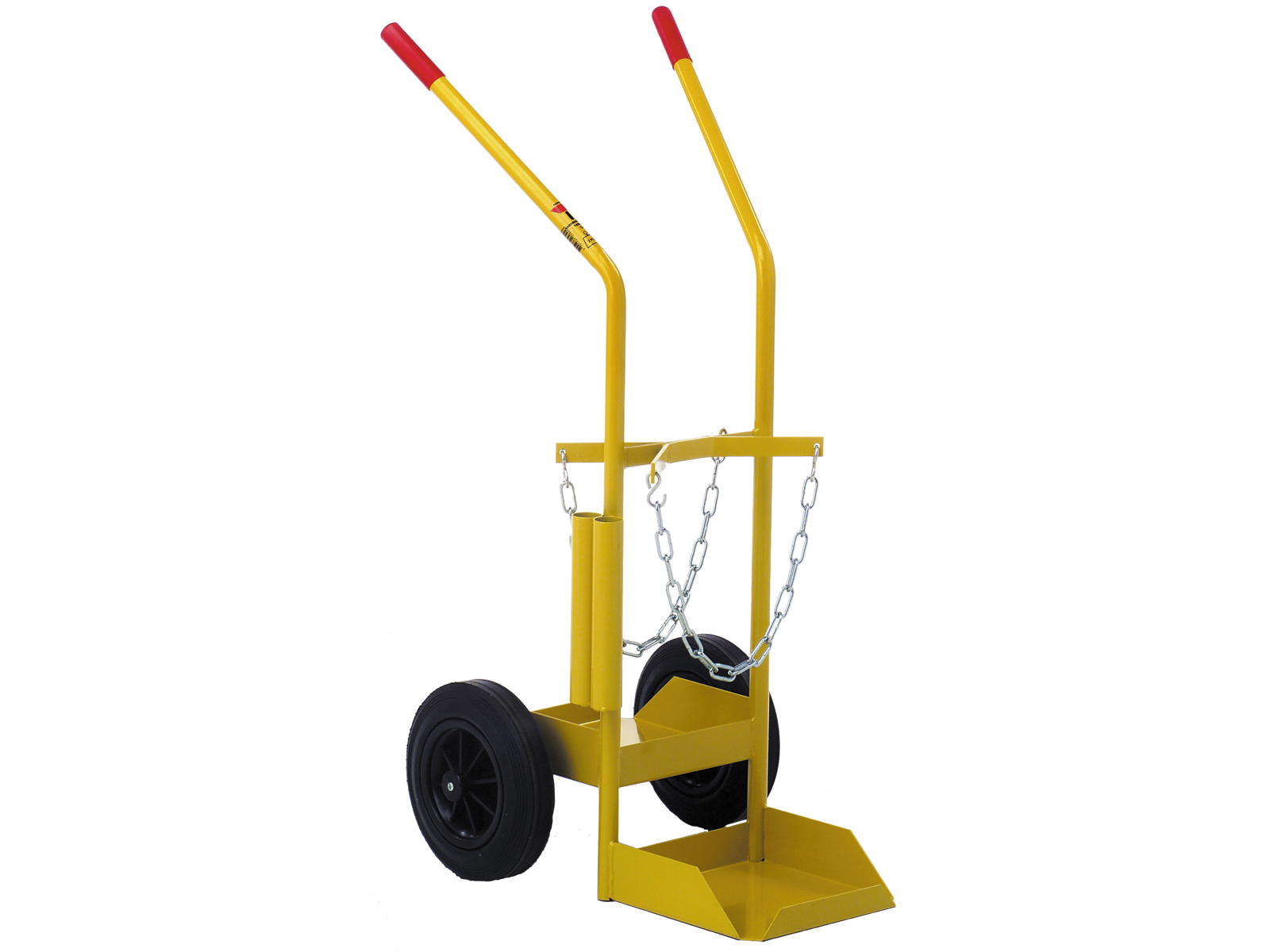 Til 2 flasker. En foran og en bagved. Med 250 mm massive hjul. Produceret i Danmark