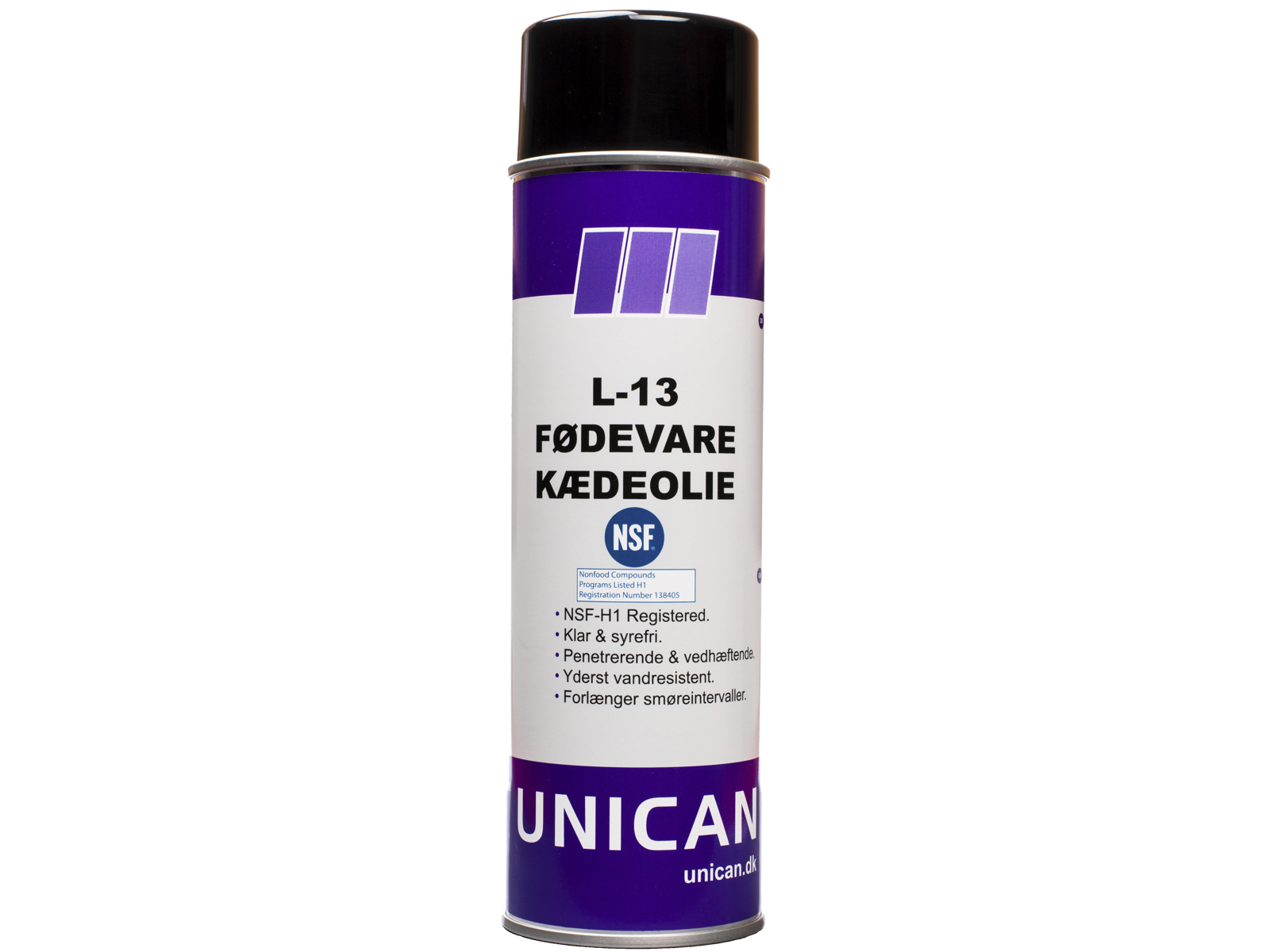 L-13 Fødevare Kædeolie er en yderst vedhæftende klar olie til smøring af kæder m.m. i fødevareindustrien eller andre industrier, hvor en syrefri, dybt penetrerende og yderst vedhæftende NSF-H1 godkendt olie ønskes. Produktet er yderst resistent overfor vandafvaskning og kan anvendes i både tørre og våde miljøer. L-13 Fødevare kædeolie er ydermere anvendelig til smøring af hængsler, tandhjul, gear, snegle, conveyors m.m. Den kraftige oliefilm giver ekstra lange smøreintervaller og beskytter samtidig mod rust og tæring. Den store vedhæftningsevne gør desuden L-13 Fødevare Kædeolie i stand til effektivt at løse smøreopgaver med hurtigløbende kæder uden risiko for, at olien bliver slynget af. Brug L-13 Fødevare Kædeolie alle steder, hvor en kraftig ikke afsmittende smøring ønskes. L-13 Fødevare kædeolie kan anvendes indenfor et meget bredt temperaturområde fra -30°C til +150°C.