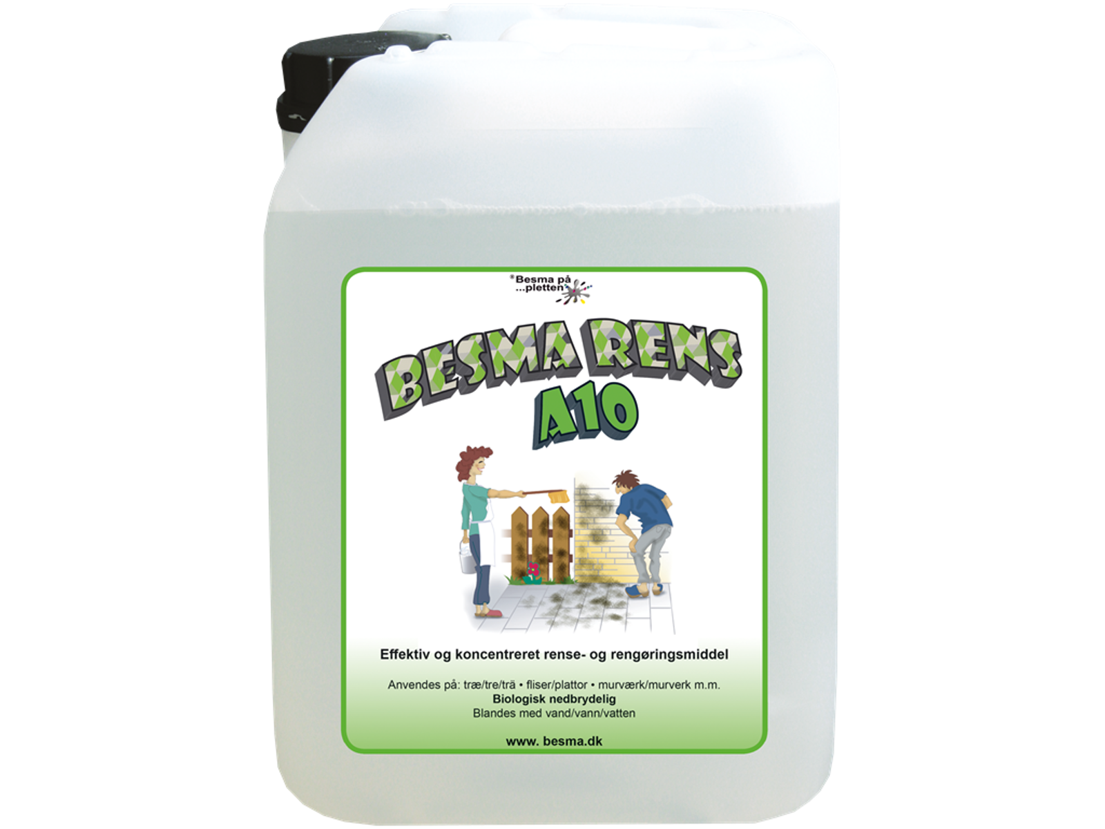 RensA10 er et særdeles effektivt rense- og rengøringsmiddel til effektiv afrensning af træ, fliser, maskiner, murværk og tage før maling m.v. Kan bruges på alle flader, der tåler vand og anvendes med børste, spray eller lavtryksrenser. Anvendes bedst mellem 10°C og 20°C. Biologisk nedbrydeligt. Blandes med koldt vand. Stærkt tilsmudsede emner: 10 %, mindre tilsmudsede emner: 1 %.