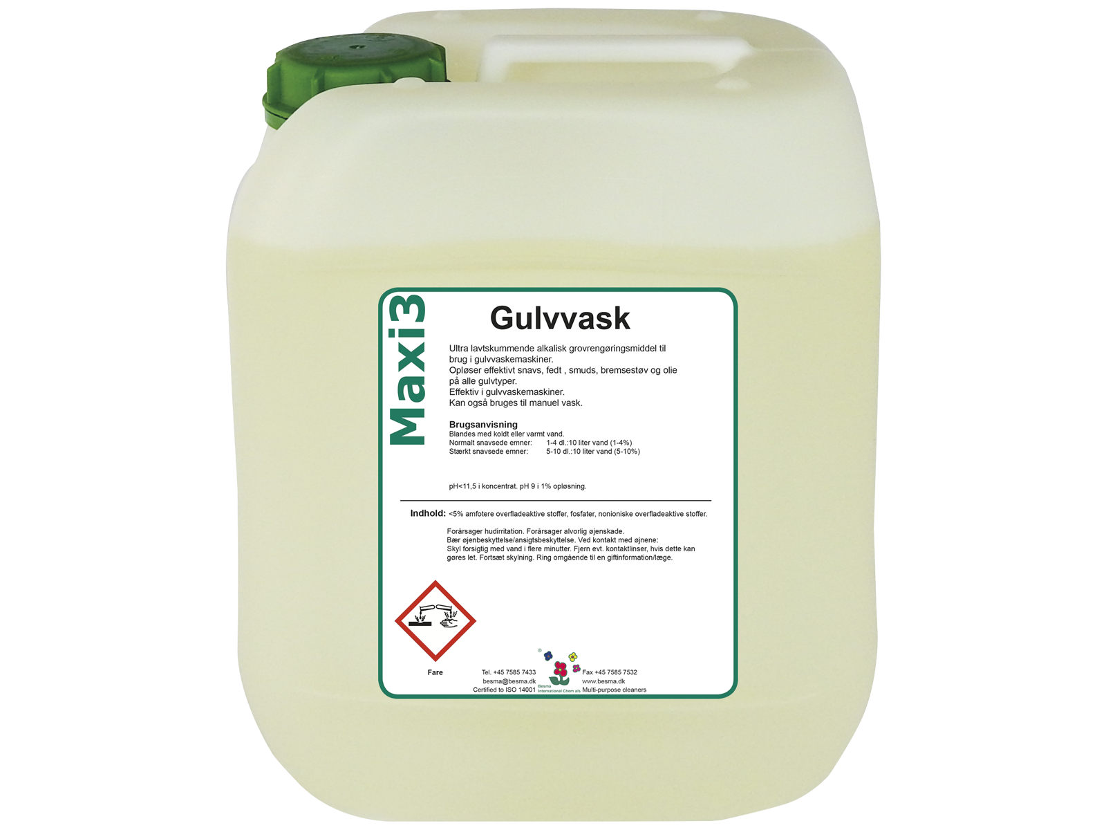 Ultra lavtskummende alkalisk rensevæske til gulvvaskemaskiner og manuelt brug. Opløser effektivt snavs, fedt, smuds, og olie på alle gulvtyper. Kan blandes med koldt eller varmt vand. Biologisk nedbrydeligt. pH-værdi koncentreret < 11,5 og pH-værdi i 1 % opløsning ca. 9.