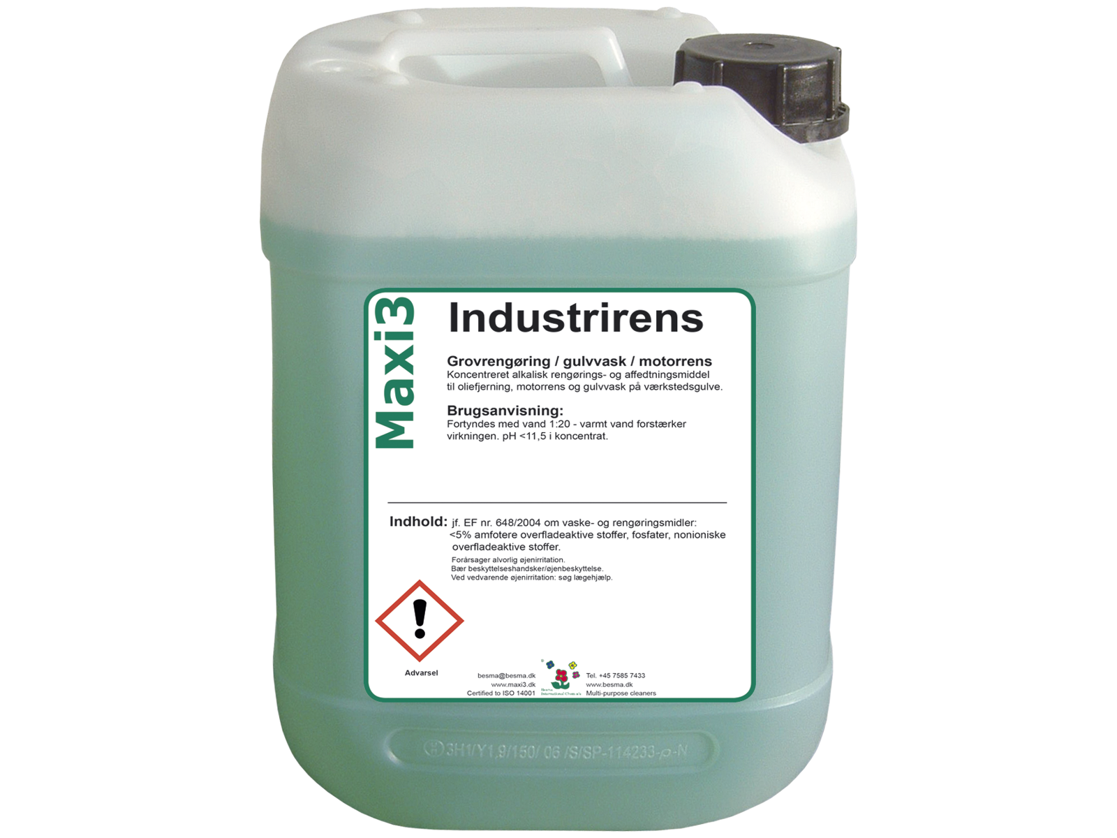 Maxi 3 Industrirens er et koncentreret, stærk alkalisk grovrengøringsmiddel til affedtning, oliefjerning samt motorrens og gulvvask hvor oliespild forekommer. Opløser olie, sod, fedt, smuds, bremse- støv og copolymerer vokstyper.