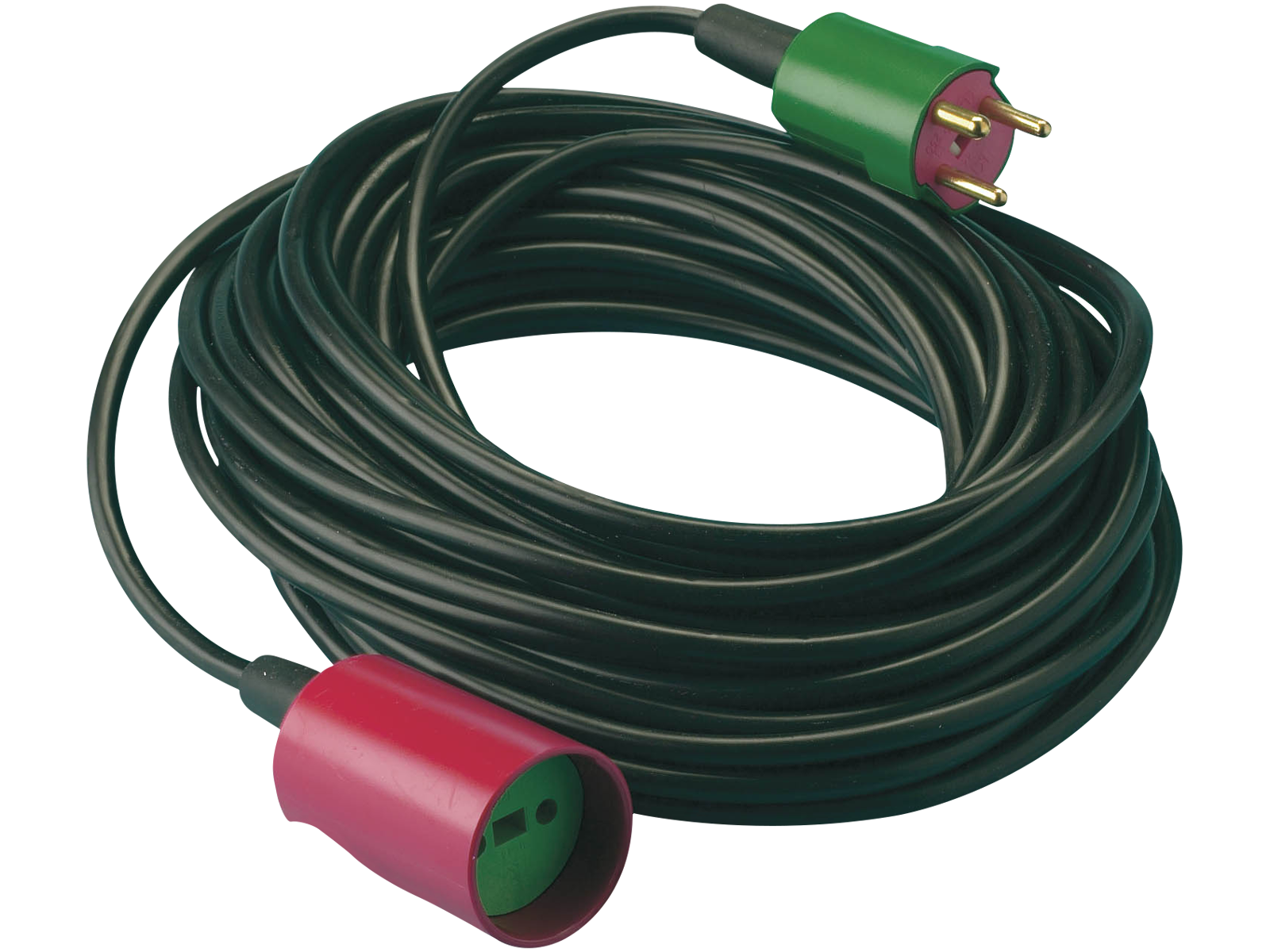 Kabelsæt med DK stikprop og forlængerled med jord. Med 3G1,5 mm² neopren-gummikabel H07RN-F. 230 V, 16 A. 3.680 W. IP44. Fås i 3 længder: 10, 15 og 25 mtr.