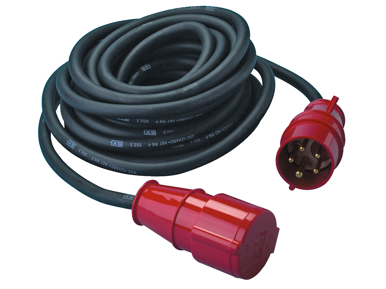 CEE kabelsæt med fasevender og neopren-gummikabel H07RN-F 5G2,5 mm². 400 V, 16 A. IP44. Fås i flere længder.
