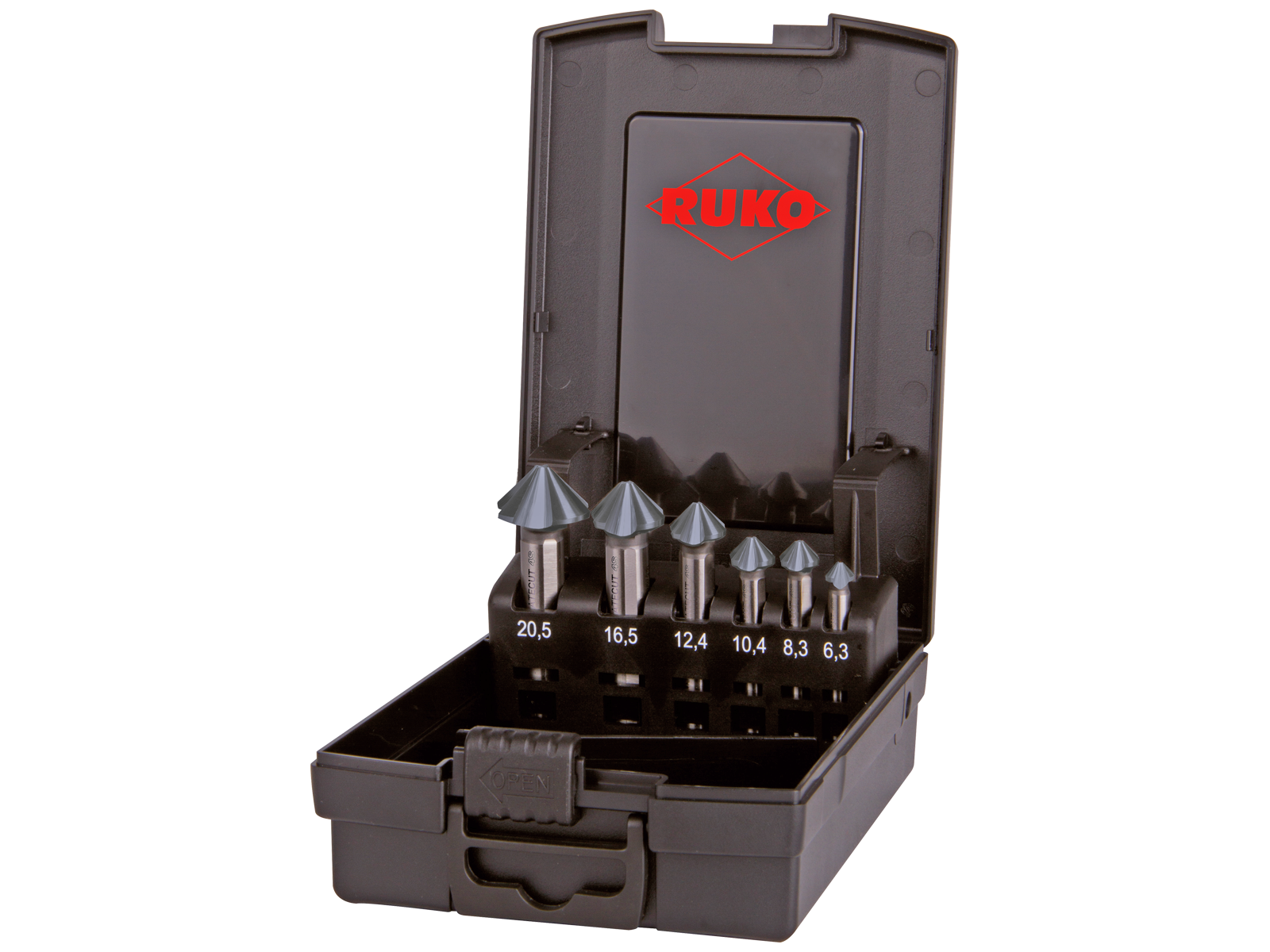 Ultimatecut forsænkersæt DIN 335. Velegnet til bl.a. stål, aluminium og rustfrit. Til grat- og ruflefri forsænkning. Arbejder med fire i stedet for tre skær. 3kt-skaft forhindrer udskridning i borepatronen og sikrer en konsekvent optimal kraftoverførsel i arbejdsprocessen - fungerer lige vel i søjleboremaskiner såvel som CNC-styrede bearbejdningmaskiner. HSSE-Co5 med RUnaTEC overfladebehandling: længere værktøjslevetid, mere slidstærkt og mere bidende materialefjernelse. Fås i to varianter.
