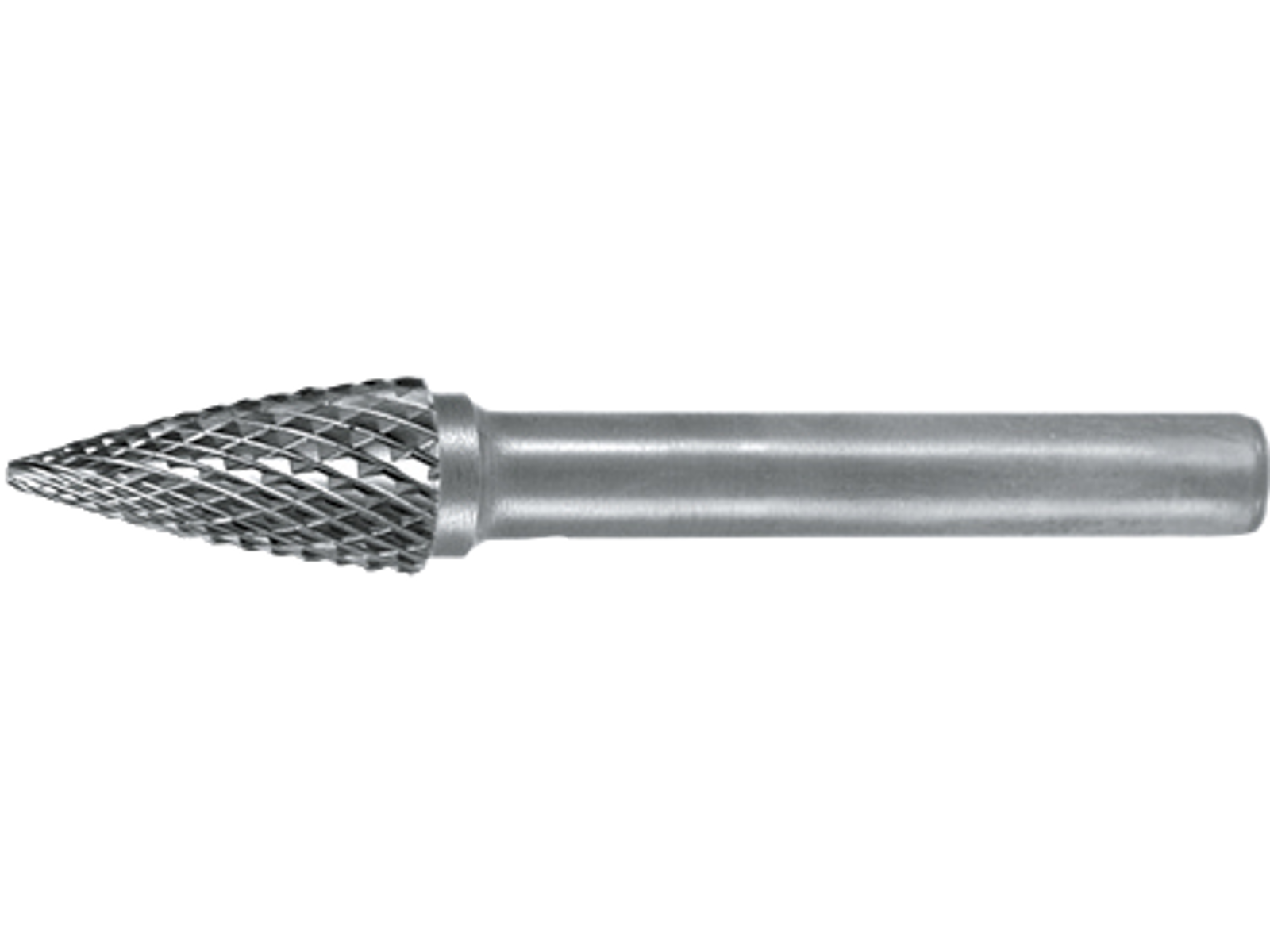• Fræsestift fremstillet af højeffektivt hårdmetal med krydsfortanding. Anvendes til højlegeret, rustbestandig, syrebestandige og varmebestandige stål, støbejern og kunststoffer. Til afgratning, kantbrud, afpudsning, svejsesømsbearbejdning samt udjævning af flader.