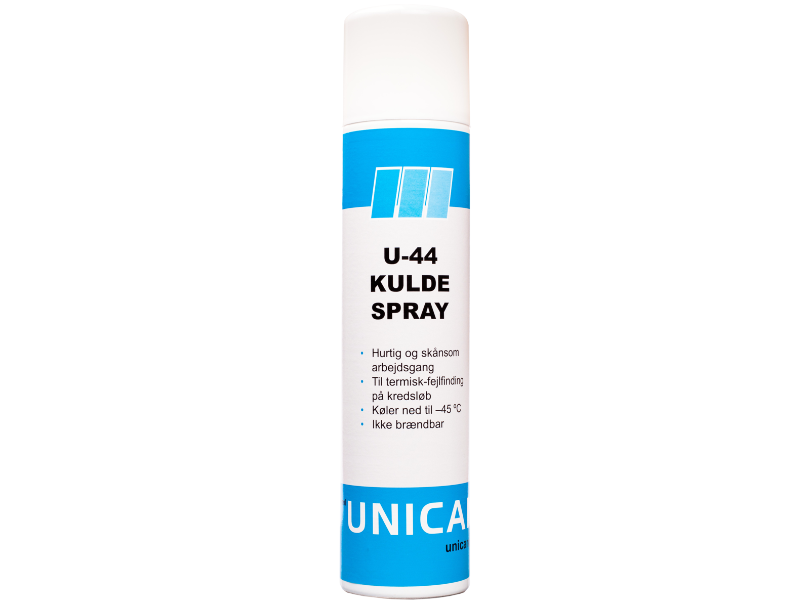 U-44 Frysespray er et ikke-brændbart produkt, som effektivt og hurtigt bruges når der skal findes fejl på termiske kredsløb. Periodiske kortslutninger, forstyrrelser i kondensatorer, modstande og integrerede kredsløb bliver hurtigt fundet ved brug af U-44 Frysespray. Produktet har i mange tilfælde vist sig som et glimrende redskab når det gælder fjernelse af tyggegummi-rester fra autosæder i f.eks. busser. Spray området, hvor tyggegummiet sidder fast med U-44 Frysespray. Området bliver øjeblikkeligt nedkølet til -40°C og tyggegummiet kan få øjeblikke efter skrabes af sædet. Produktet kan også anvendes til koldkrympning af metal-emner. U-44 Frysespray er særdeles skånsom mod langt de fleste overflader, det anbefales dog, at der foretages test før brug.
