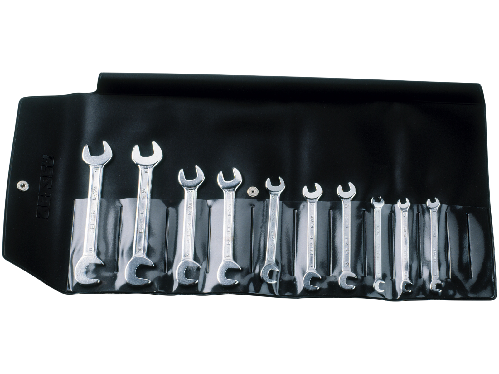 Gaffelnøglesæt med 10 dele leveret i plastmappe. Liliput dobbelt gaffelnøgler udformet med hhv. 15° og 82,5° gaffelvinkel og ens dimension i hver ende. God til opgaver hvor pladsen er trang fx i tele- og elektronikbranchen. Fremstillet af højtlegeret stål med mikro-matforkromet finish. Sættet indeholder dimensionerne: 4/4,5/5/5,5/6/7/8/9/10/11 mm.