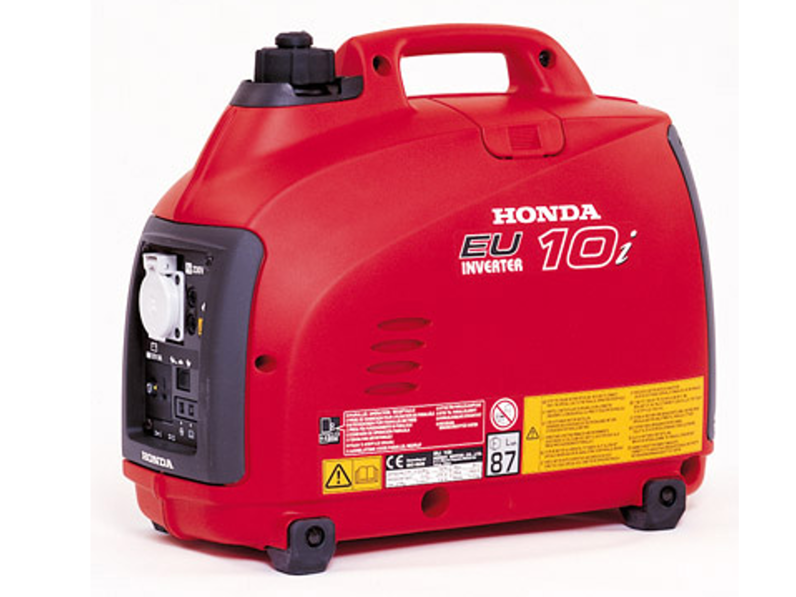 Lille handy generator, 230 V - 1,0 kVA - 50 Hz vekselstrøm.12 V-8,0 A jævnstrøm til batteriopladning.4-takt luftkølet benzinmotor på 2,1 hk, GXH 50.Et moderne design med en vægt på kun 13 kg samt et meget lavt støjniveau. Er forsynet med tomgangsautomatik.To EU 10I kan parallelforbindes, hvorved der opnås dobbelt ydelse.
