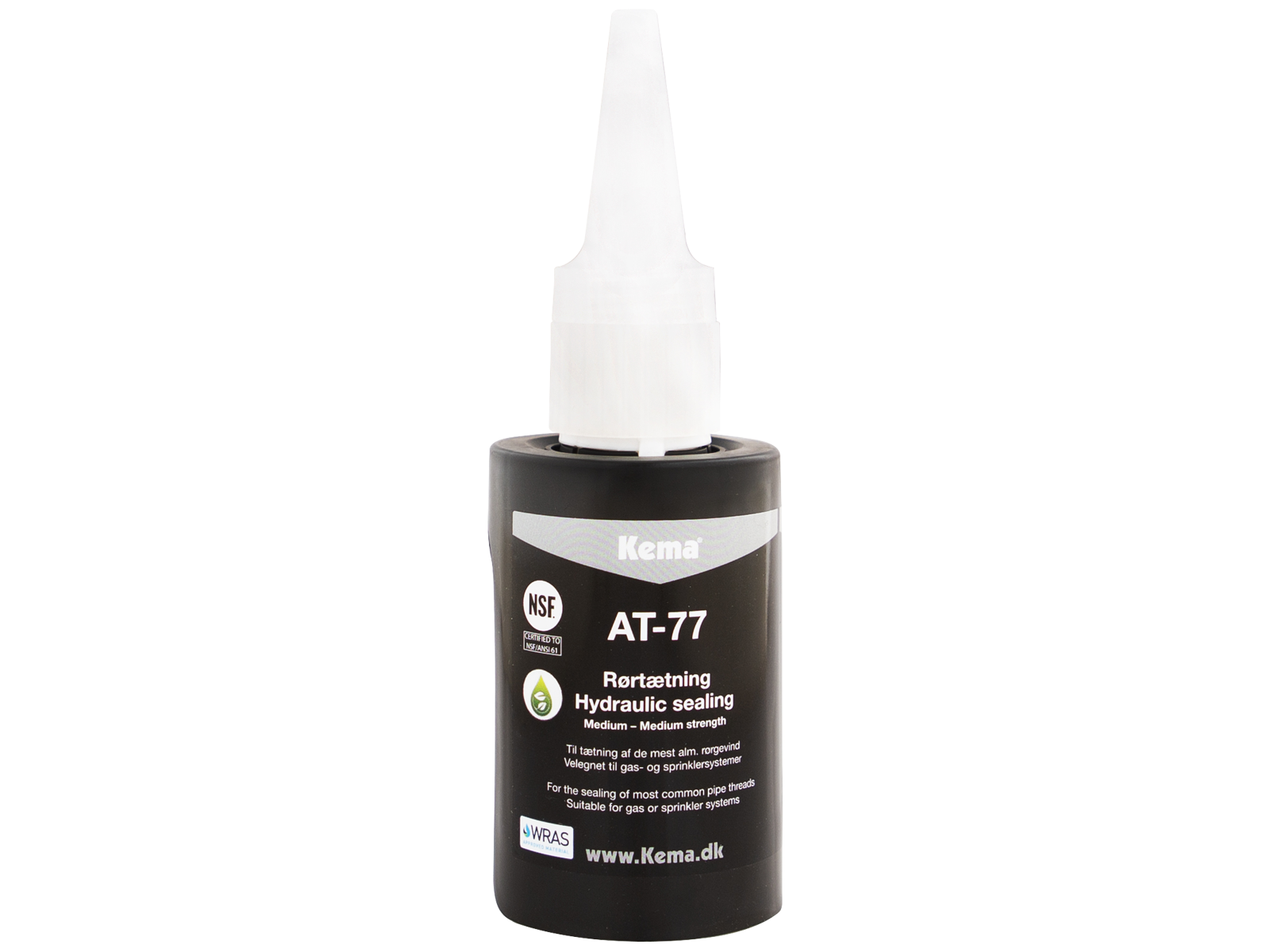 KemLock rørtætning anvendes til tætning og sikring af rør, fittings, grove gevind, hydraulik og pneumatik. Erstatter pakgarn og PTFE-tape. AT-77 vælges for medium styrke. P.g.a. den lave dosering og den hurtige hærdetid, er KemLock særdeles velegnet til samle-båndsproduktion. AT-77 medium tætning med PTFE til hydraulik og pneumatik til grove rørgevind tixotrop produktet lever op til kravene i henhold til NSF/ANSI Standard 61. Hvis produktet er påført efter anvisningen er AT-77 resistent overfor benzin og diesel. Det kan ikke anbefales at bruge AT-77 i forbindelse med biodiesel uden forudgående test.