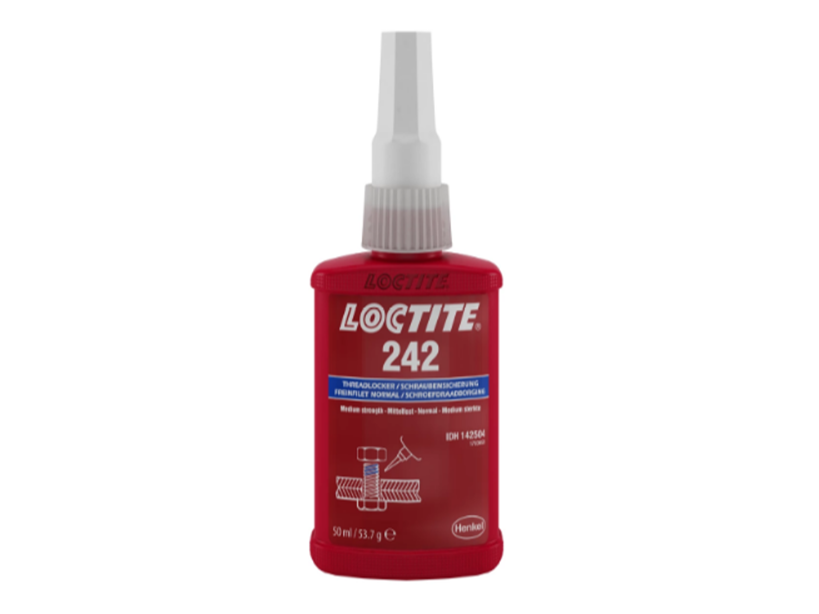 LOCTITE® 242 er en middelstærk, middelviskøs, methacrylat-baseret gevindsikring til generel brug. Typiske fikseringstider er 5 min på stål, 15 min på messing og 20 min på rustfrit stål. LOCTITE 242 er beregnet til fastgørelseselementer, der skal kunne adskilles med sædvanligt håndværktøj. Tiksotrop for at forebygge migrering efter påføring.