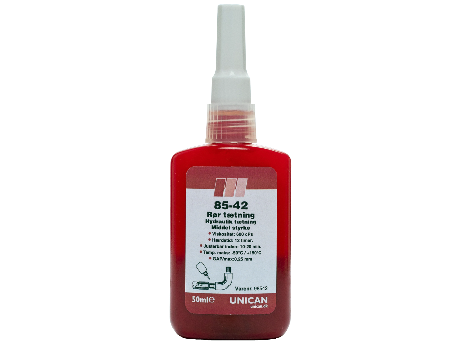 UniTite rør-, hydraulik- og gastætning. Tætner rør, fittings, grove gevind (3/4"), hydraulik, gas og sprinklersystemer osv. Produkterne fås i 2 styrker, svag og middel demonterbar. Hærdetiden er op til 24 timer og emnerne er justerbare indenfor 15-120 minutter, afhængig af hvilket produkt der er tale om. Temp. område mellem -55ºC til +150ºC.