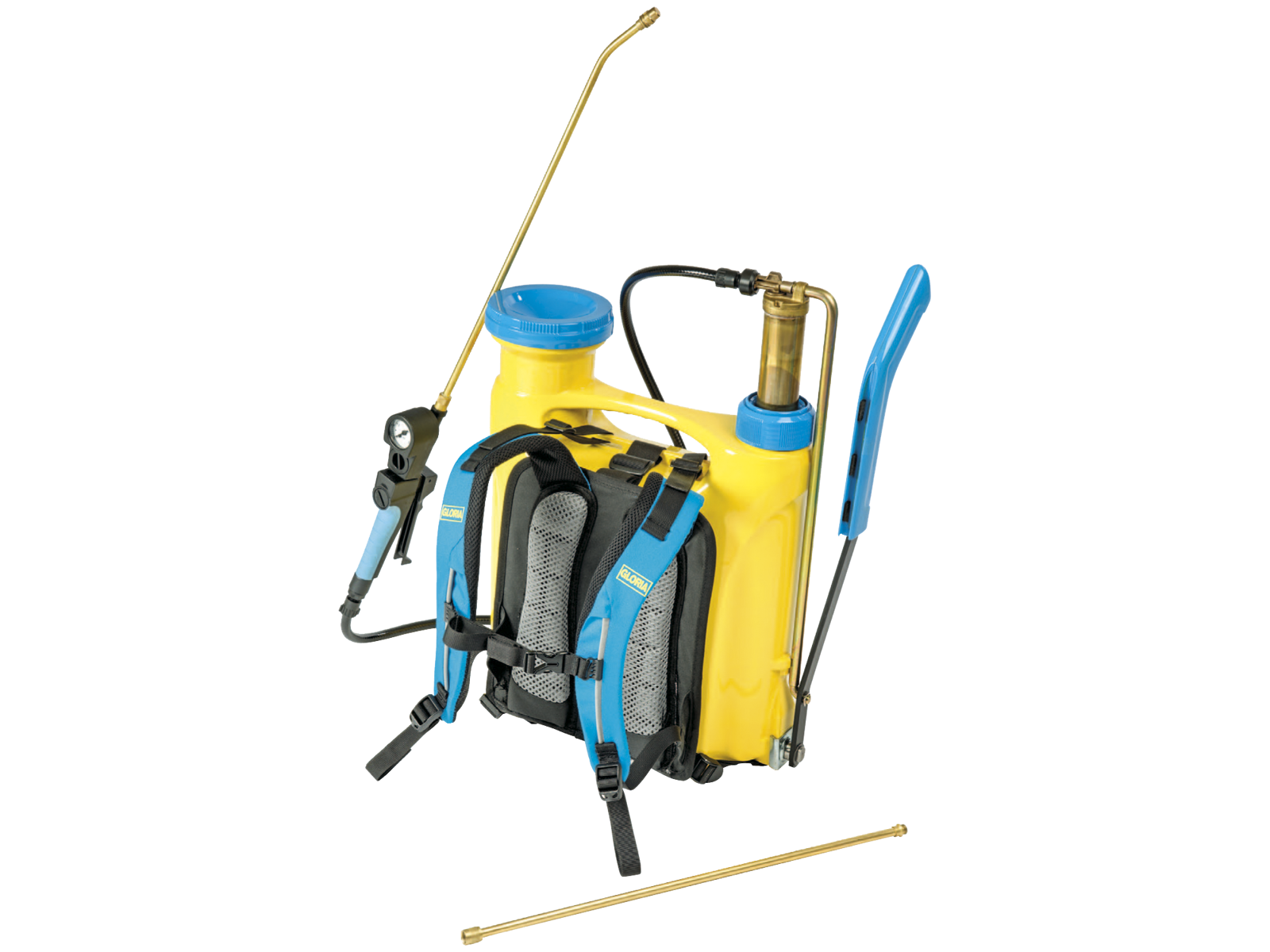 • Messingsprøjterør med justerbar rundstråledyse. Forlængerrør på 50 cm. Messing pumpe med VITON pakninger. Pumpehåndtag ergonomisk udformet med softbelægning - kan betjenes fra henholdsvis højre eller venstre side. Påfyldningskontrol. Professionelt bæresystem af ventilerbart materiale - anatomisk udformede skulderseler og justerremme. Velegnet til sprøjtning af større arealer. Vægt 5,6 kg. Der tilrådes daglig tømning og rengøring af sprøjten efter endt brug for opnåelse af en maximal holdbarhed.