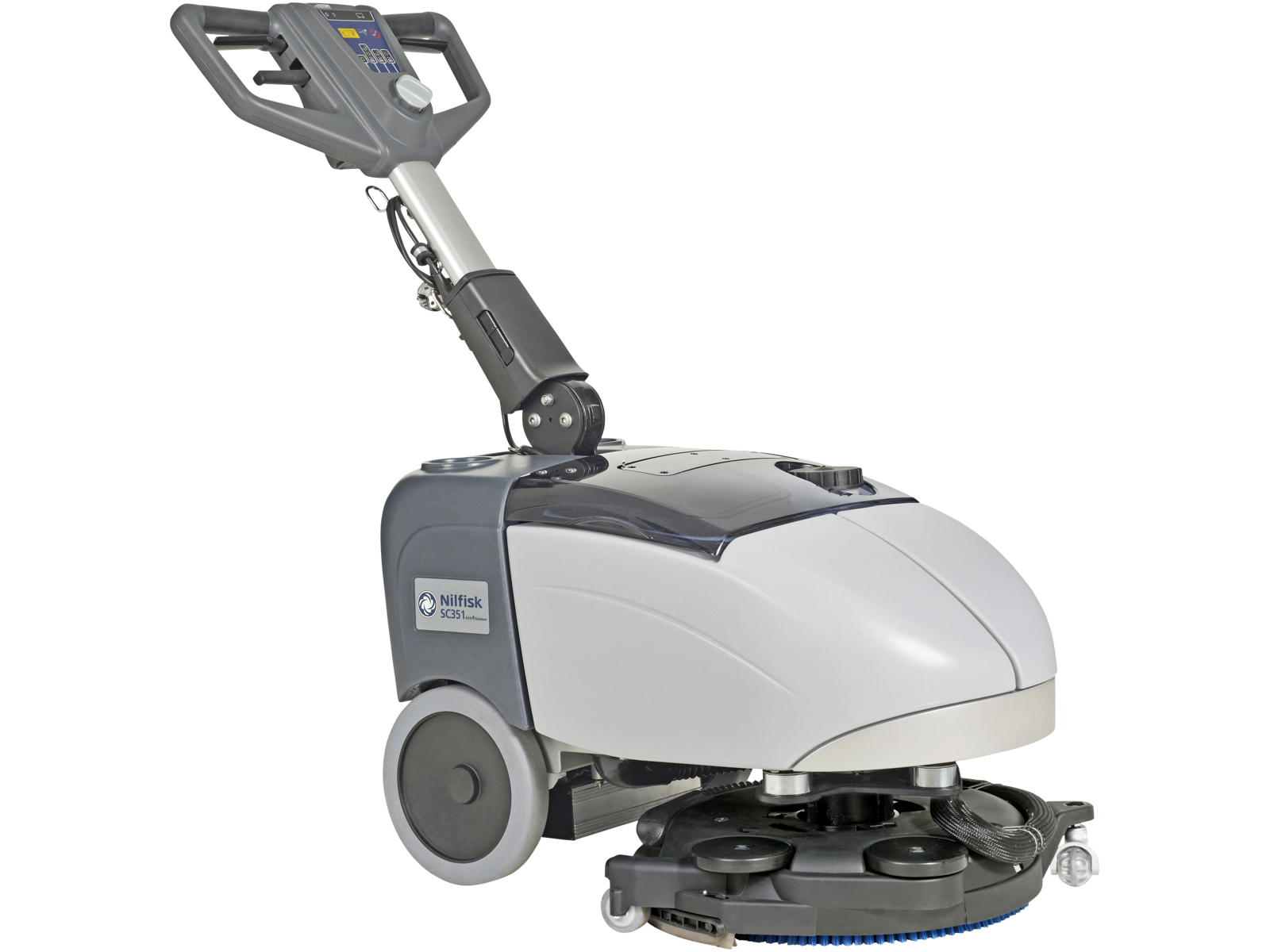SC351 Komplet walk-behind gulvvaskemaskine til daglig rengøring af mindre områder. Gulvvask og tørring i alle retninger, med et imponerende børstetryk på 27 kg. Det er nemt at se, hvor anvendelig denne funktion er i forhold til at gøre rent i trange områder, mellem og bag borde, hylder, møbler og i andre svært tilgængelige områder. Gulvvaskeren passer perfekt til rengøring af hoteller, skoler og institutioner, mindre butikker, kantiner og caféer. Kraftfuld børstemotor øger driftssikkerheden og reducerer serviceomkostningerne. Optima batteri sikrer høj produktivitet og konstant ydeevne. Nem justering af børstedækket, giver perfekt fremdriftskontrol. Sugefodssystem med høj opsugningsevne og patenteret fiksering af sugelæberne, gør det nemt at afmontere og udskifte sugegummi.