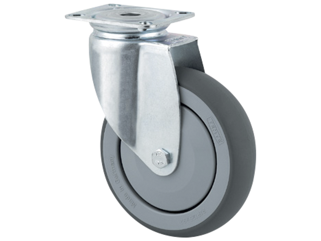 hjuldiameter 75 mm, m/gummibane, med rektangulær topplade til 100 Kg