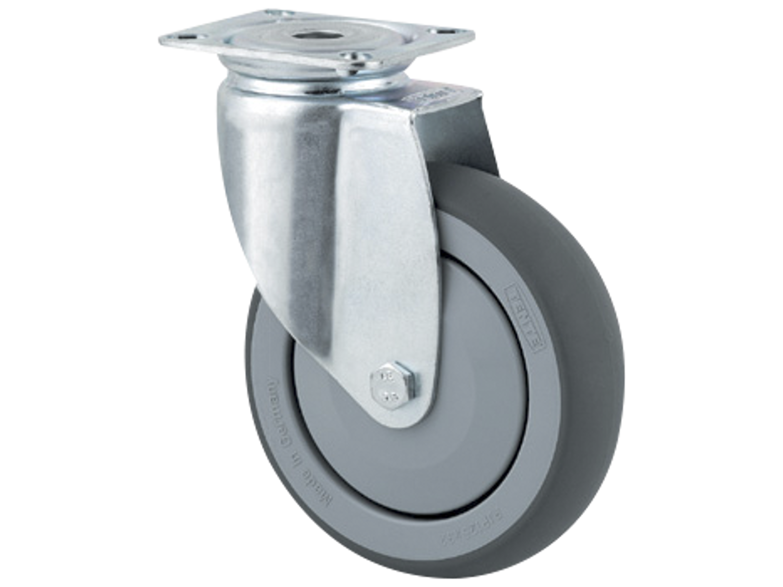 hjuldiameter 125mm, m/gummibane, for montering med bolt i topplade