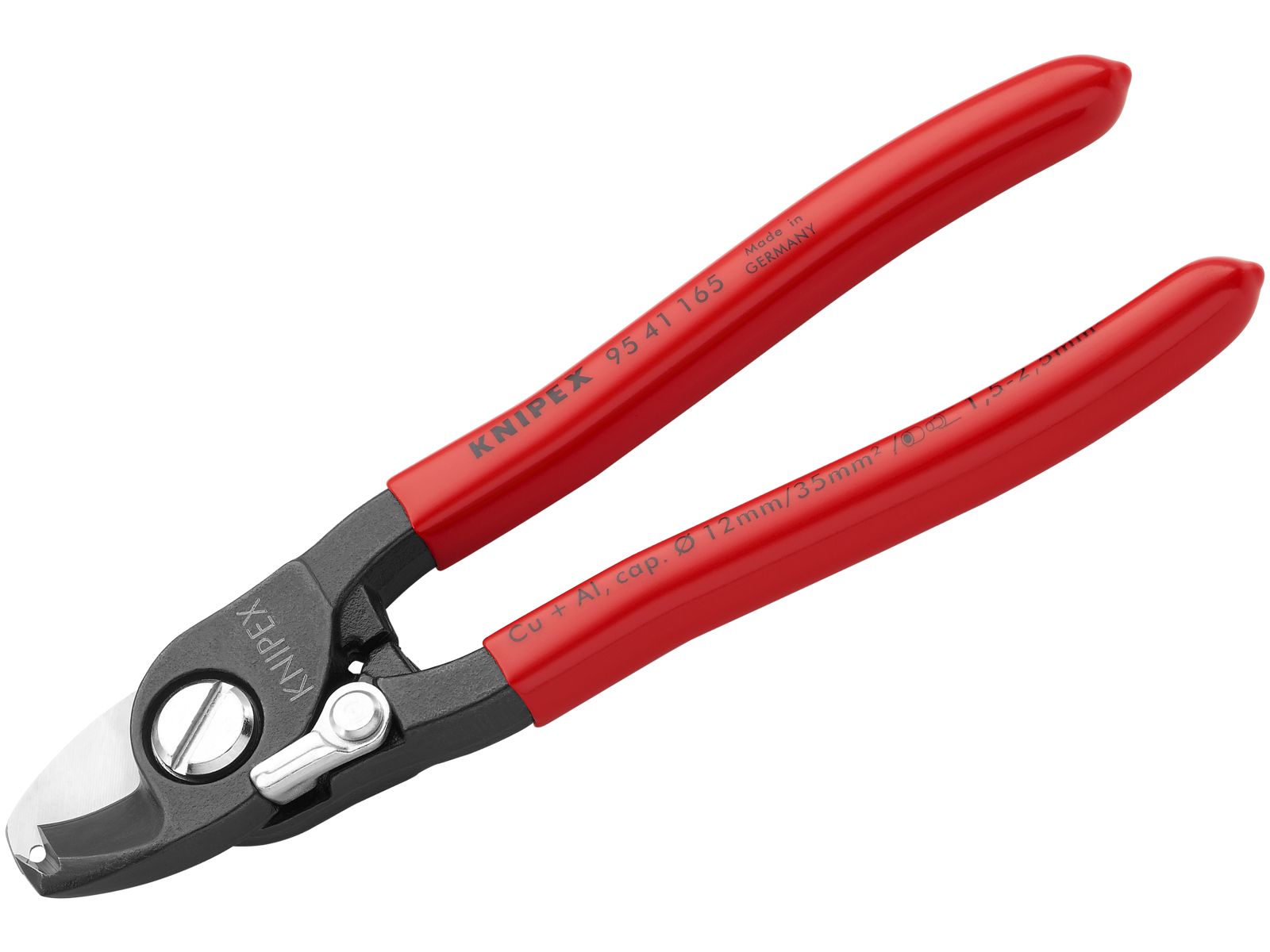 Bruneret, greb betrukket med kunststof, med afisolerings-funktion. Multifunktionsværktøj til forarbejdning af NYM-kabler på 3×1,5 mm² til 5×2,5 mm² (skære og afisolere). Universalt afisoleringssted til begge massivleder-tværsnit. Sikker centrering af kablet ved afisoleringsstedet pga. skærenes V-formede geometri. Til at skære Cu- og Al-kabler, en- og flertrådede. Uegnet til ståltråd og hårdttrukne kobberledere. Hærdede skær med præcisionsslibning. Skærer glat og ordentligt uden at klemme. Let skæring med enhåndsbetjening. Klembeskyttelse forhindrer sammenklemningskvæstelser. Justerbart skrueled, selvsikrende. Special-værktøjsstål af særlig kvalitet, smedet, oliehærdet.