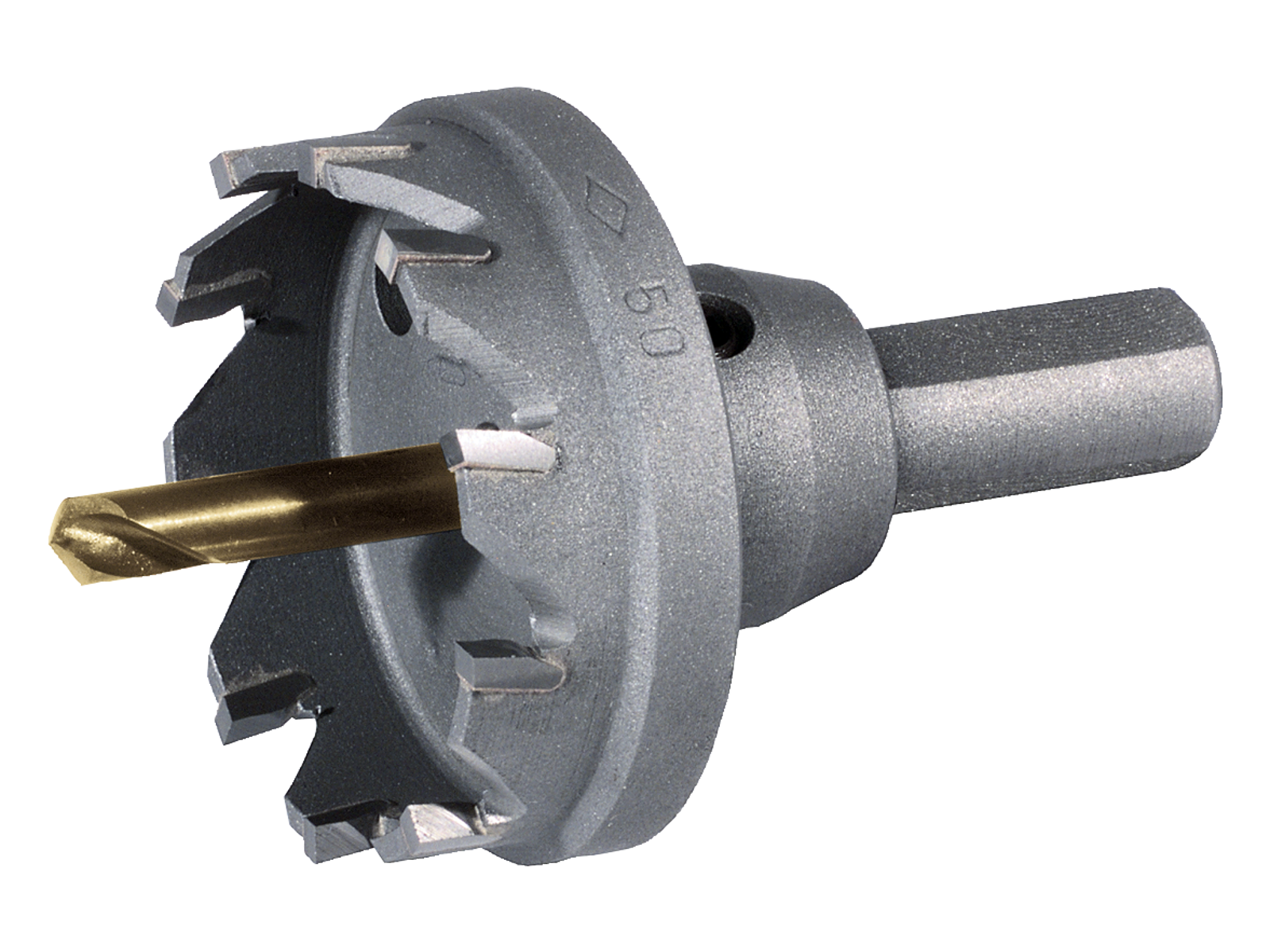 Hårdmetal-hulsav lige fortandning 16 mm. Materialetykkelse max 4 mm. Ruko's hårdmetalhulsave kan bruges i hånd- og søjleboremaskiner, dog kun med manuel tilspænding. Egnet til kromstål indtil 2,0 mm, stål og stålgods, letmetal, kunststof, armeret væv, gips og gasbeton, træbearbejdning. Centrerbor HSS Co5, stor nøjagtighed, stabil konstruktion, hulsav og skaft i et, trekantskaft, skæredybde-begrænsning, positiv spånvinkel med specialtilslibning, god spånafgang, slibbart hårdmetalskær. Ikke velegnet til slagboremaskiner, start med lille tilspænding, bor med lille og ens tilspænding, undgå pendlebevægelser, brug skæetabel, brug kølemiddel. Fås i dimensionerne 16-150 mm.