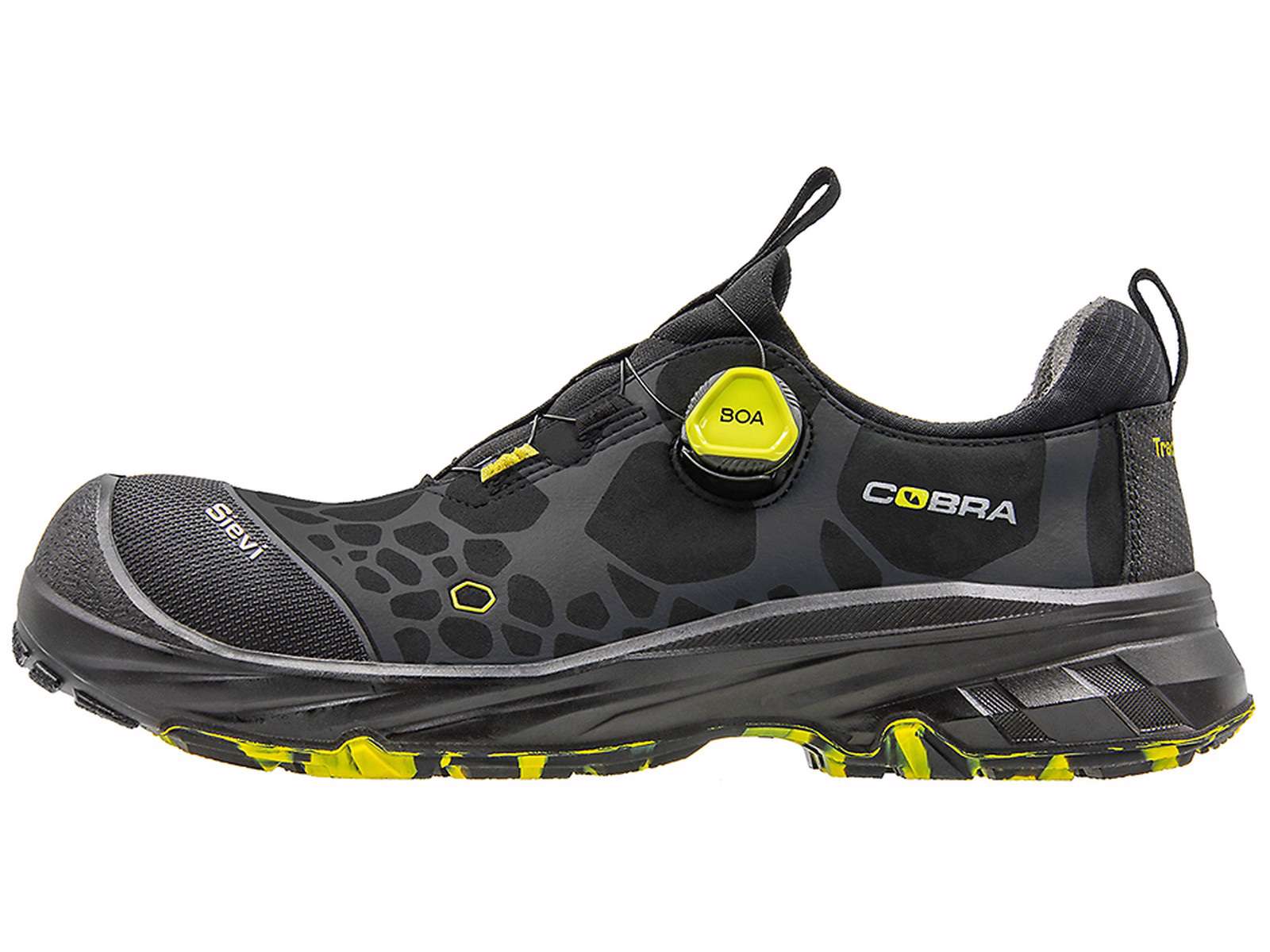 Den sokkeagtige konstruktion og BOA® Fit System placeret i siden øger fodtøjets brugskomfort. Sikkerhedsfodtøjets fremragende greb og slidstyrke er sikret med Sievi TractionPro®-friktionssålen, hvis sporty profil giver godt greb og stødabsorbering specielt for fodens støtteområder. FlexEnergy®-flekselementet absorberer den opståede bevægelsesenergi, og over 55% af energien sendes tilbage til foden.