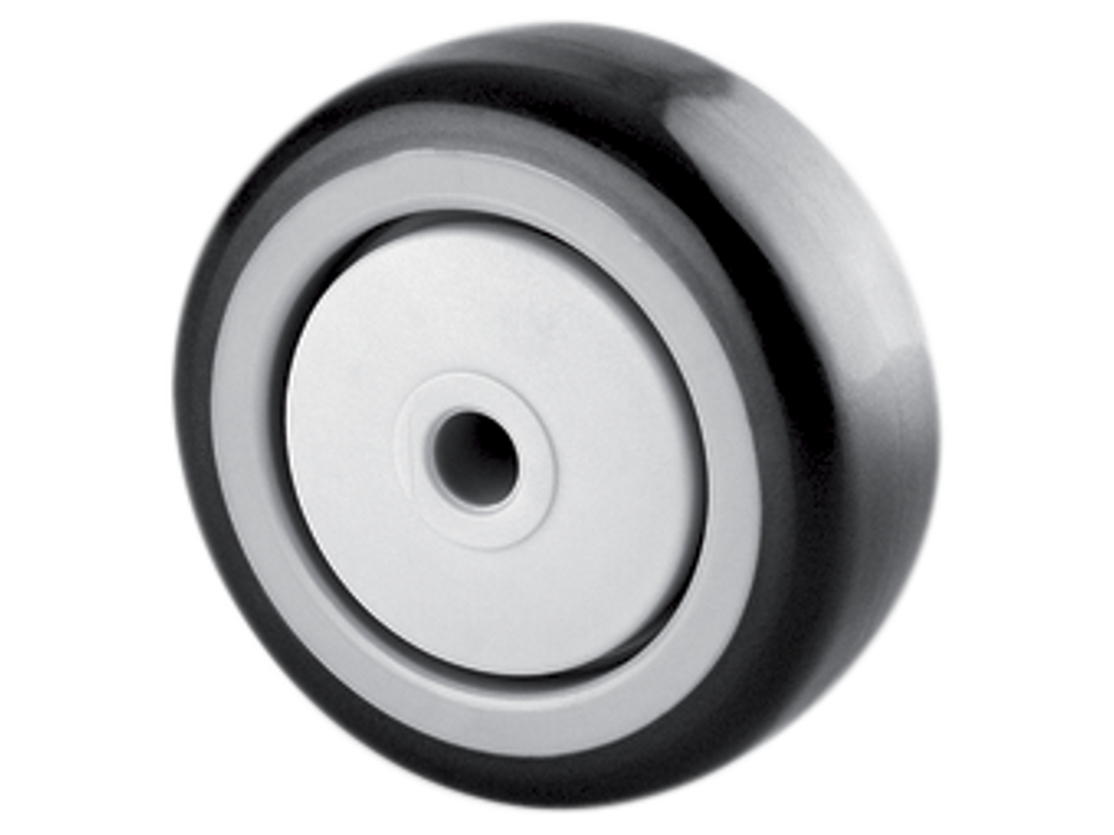 Løst hjul med nav i polyamid med sprøjtestøbt polyuretan samt DIN-kugleleje.
